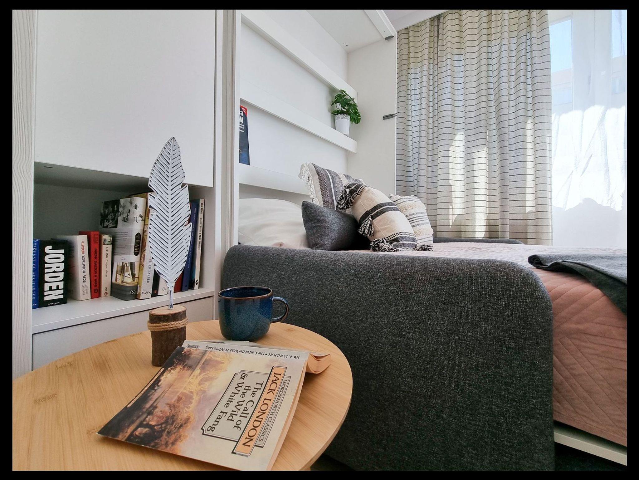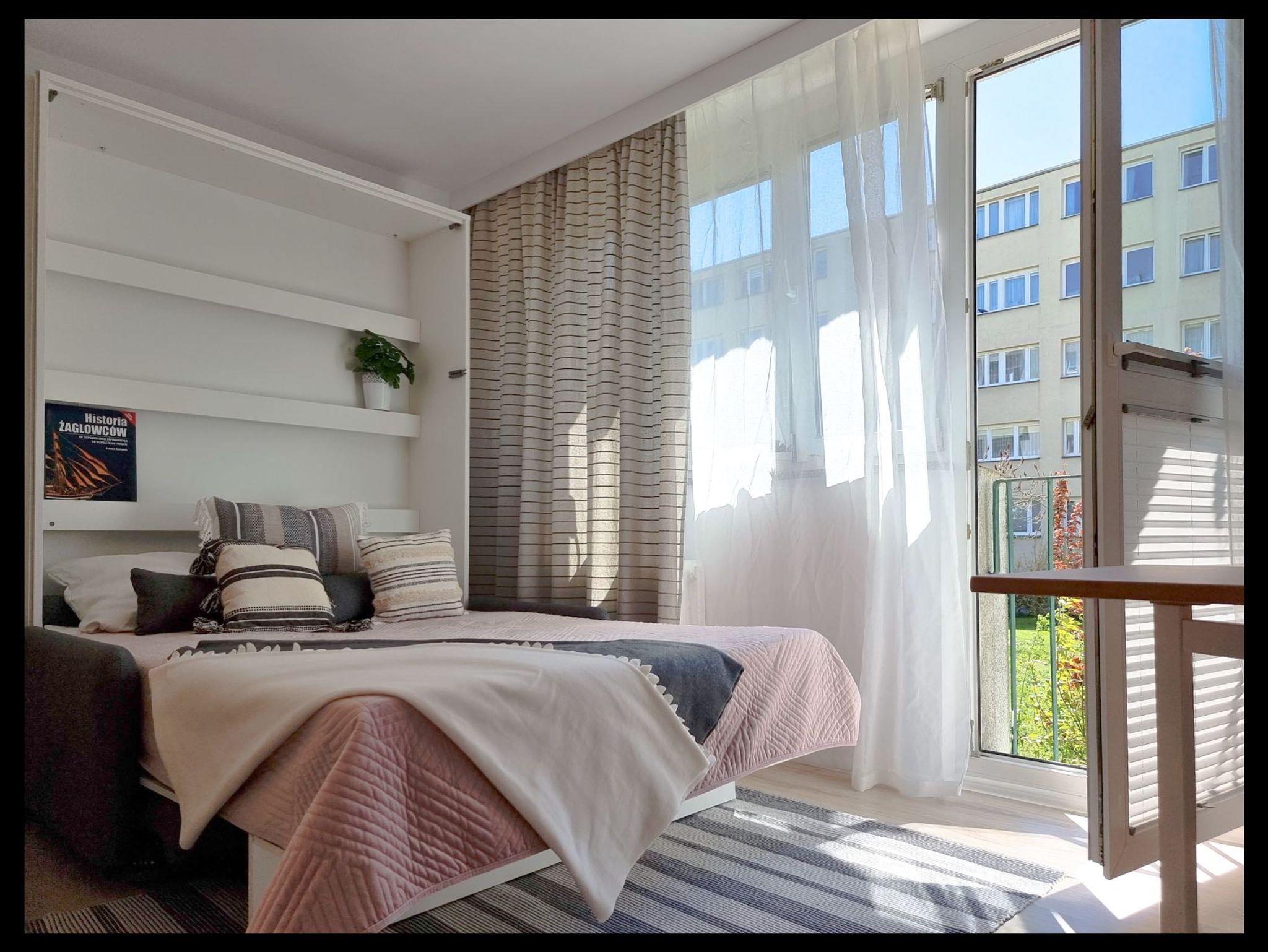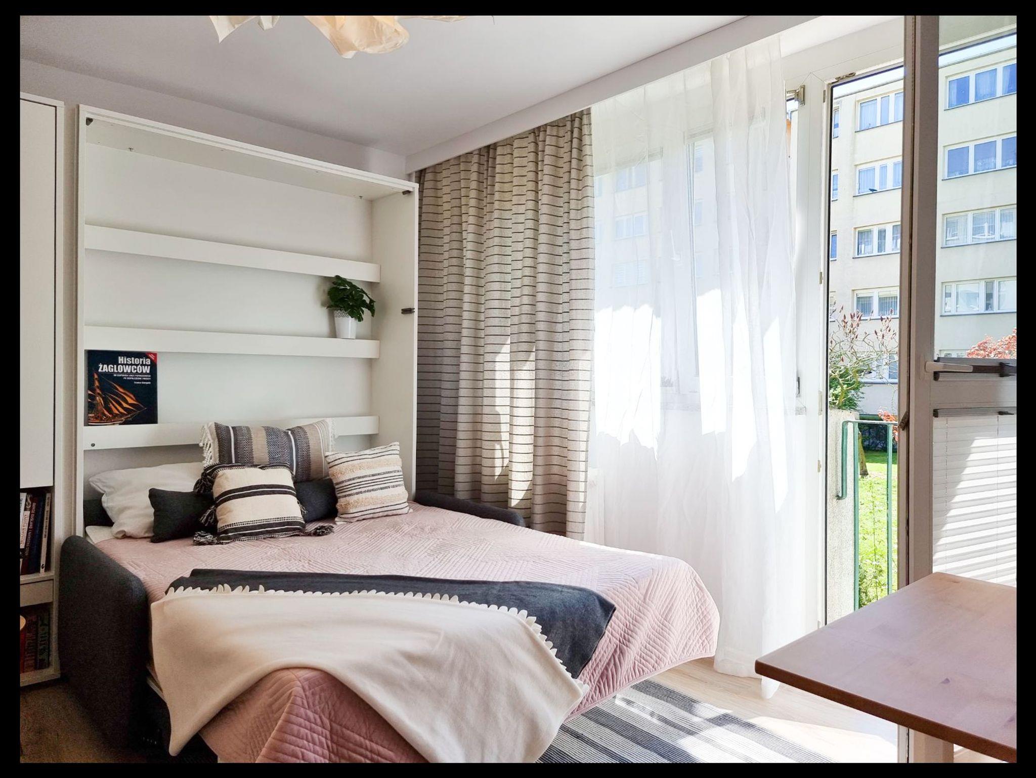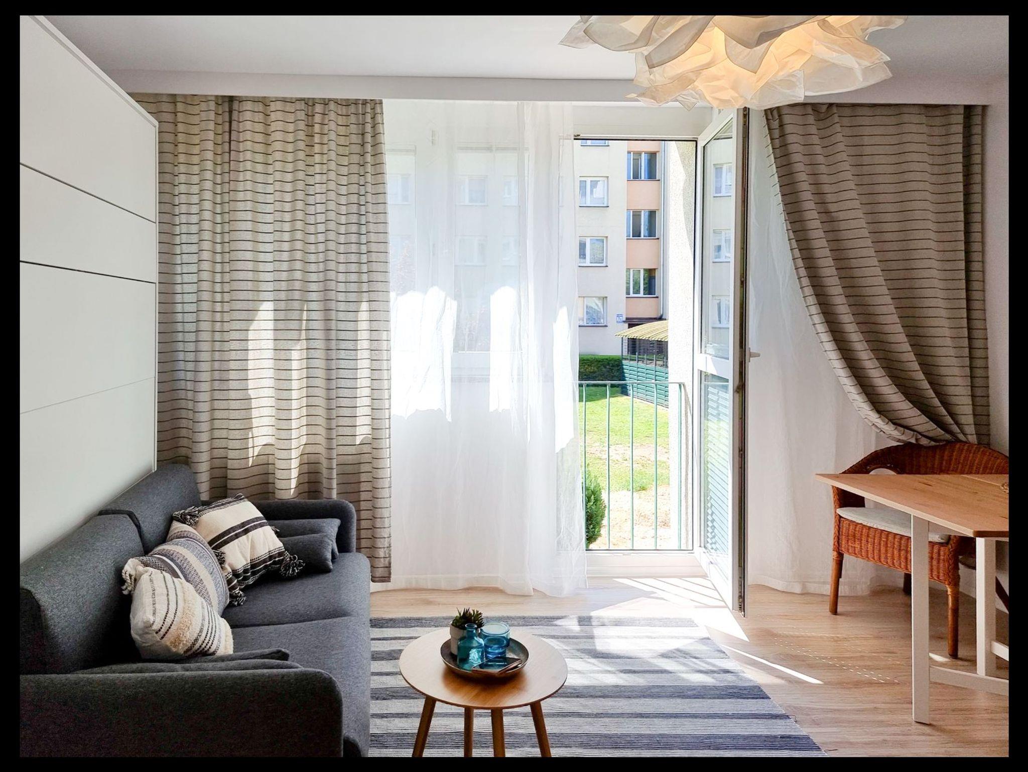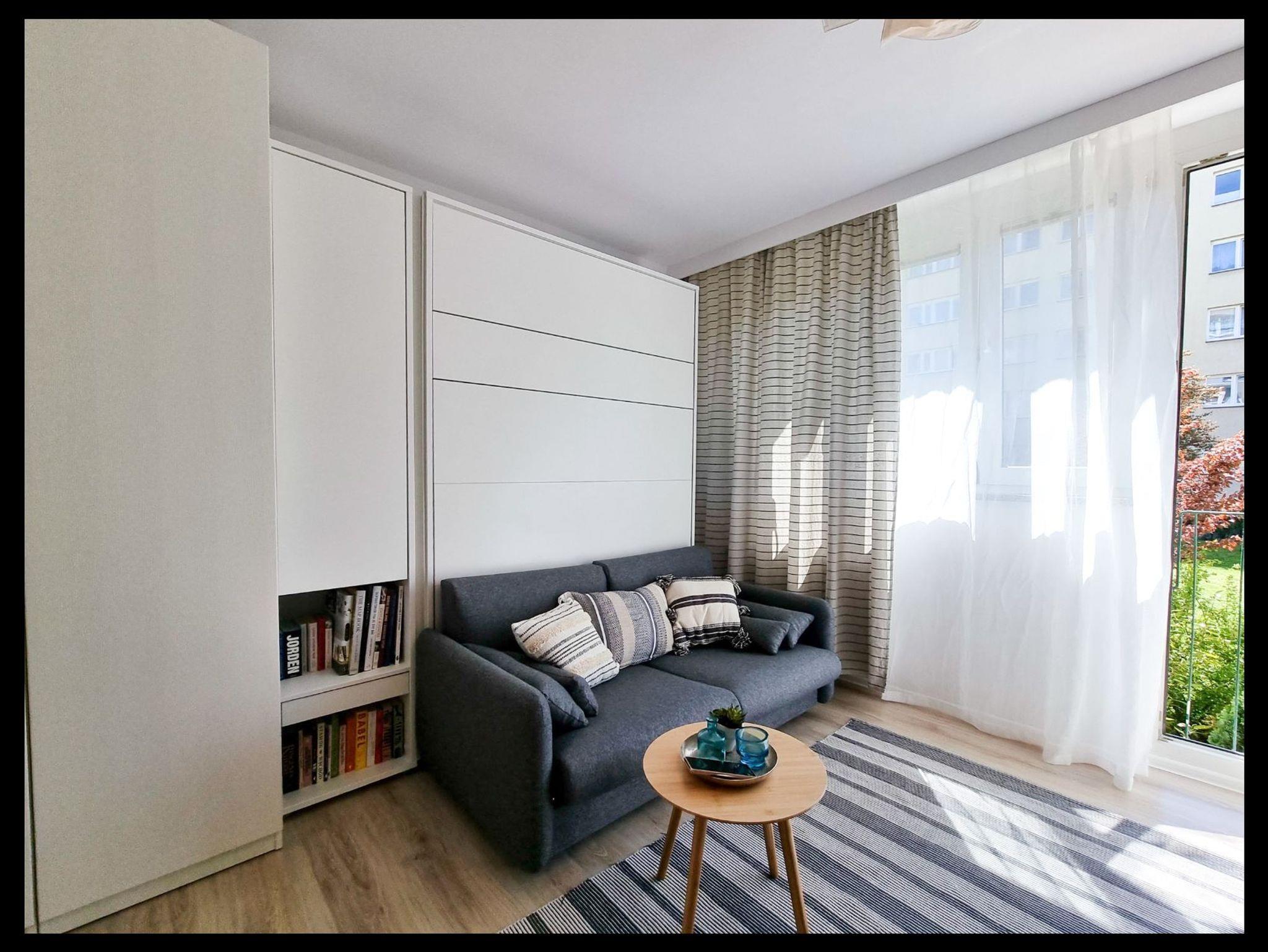 Die Wohnung besteht aus einem Wohnzimmer mit einem Halb-Doppel-Schlafzimmer, so dass der Raum perfekt genutzt wird, hat das Wohnzimmer eine Küchenzeile, einen Tisch mit 2 Stühlen, eine Französisch Art Balkon.