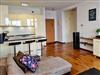 Grunwaldzka Straße, d.h. zum Zentrum von Swinemünde. Alle Wohnungen sind so entworfen, so dass die effektive Verglasung und Balkone zur Südseite mit Blick auf die Mündung der Swine und den Hafen gerichtet sind. Das Erdgeschoss hat eine Handels- und Dienstleistungsfunktion (Solarium, Restaurant, Supermarkt, etc.). Das Gebäude verfügt über einen Aufzug, Kabel-TV und die Parkplätze befinden sich auf der Rückseite des Gebäudes.