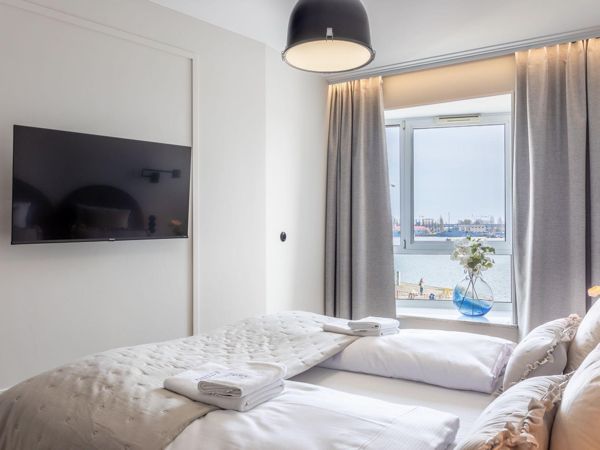 The flat overlooking the harbour "Concha 13" in Swinoujscie is a unique place to rest and relax, loved by our most demanding guests. It is a very spacious, extremely elegant and fully equipped flat with two bedrooms, living room with kitchenette and bathroom with total area of 77 m2. Its additional advantage is the balcony, which is a very practical extension of the flat and allows you to enjoy the beautiful weather and the company of your loved ones at any time of the day.