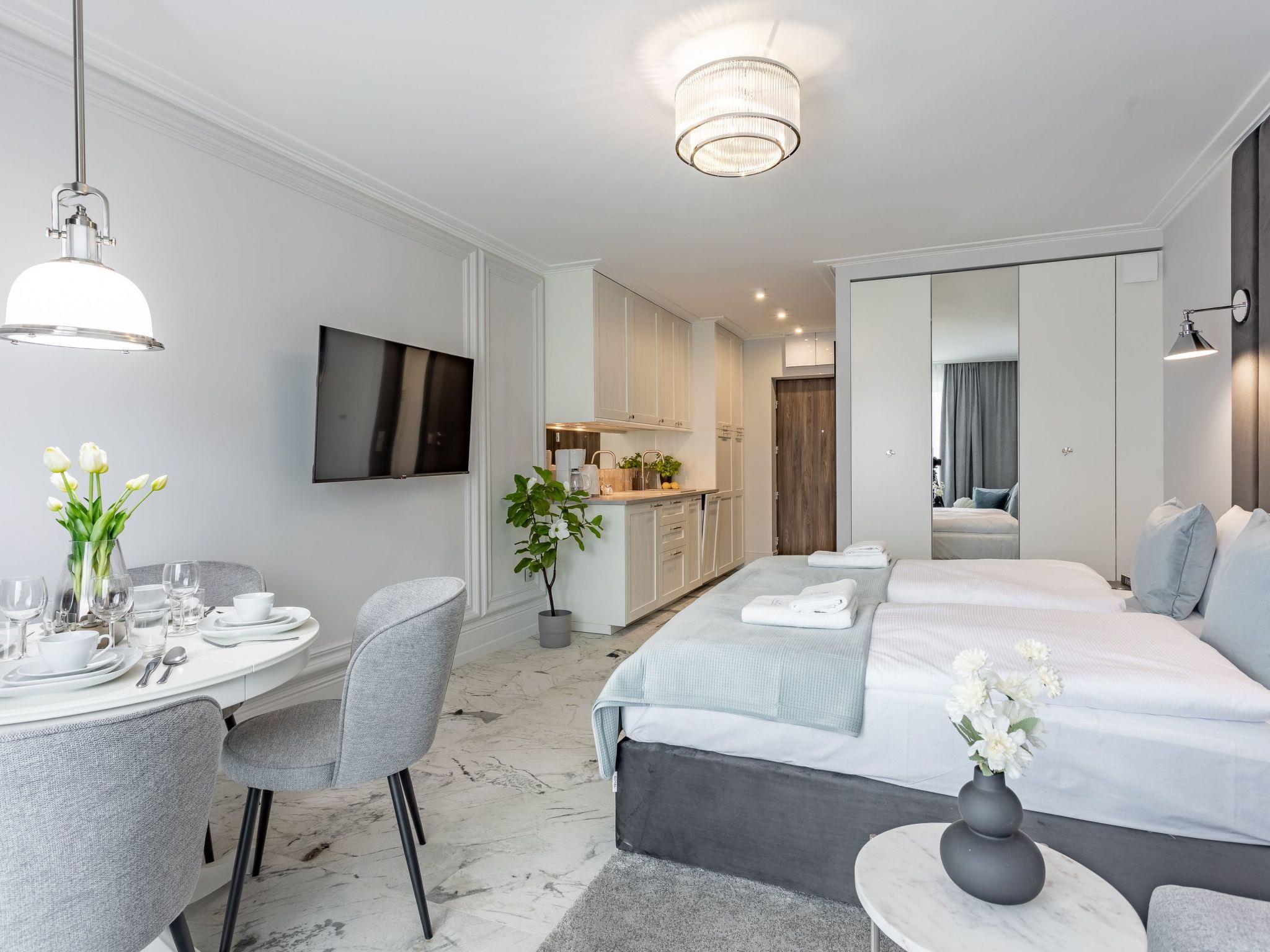 It consists of a living, dining and sleeping area, fully equipped kitchenette and bathroom. Its total area is 29 m2, which is perfectly complemented by a balcony - the perfect place to drink your favourite coffee in the morning. The flat combines luxury and sensuality with a touch of lightness - the furnishings are expressive yet harmonious and very sublime. It certainly encourages you to stay longer and allows you to spend your free time comfortably after all-day trips by the sea in a spirit of opulence and elegance. Here, every day is like an exciting cruise, after which you land in the harbour to ... recharge your batteries for new adventures. An ideal place for people who want to feel the real atmosphere of the sea.