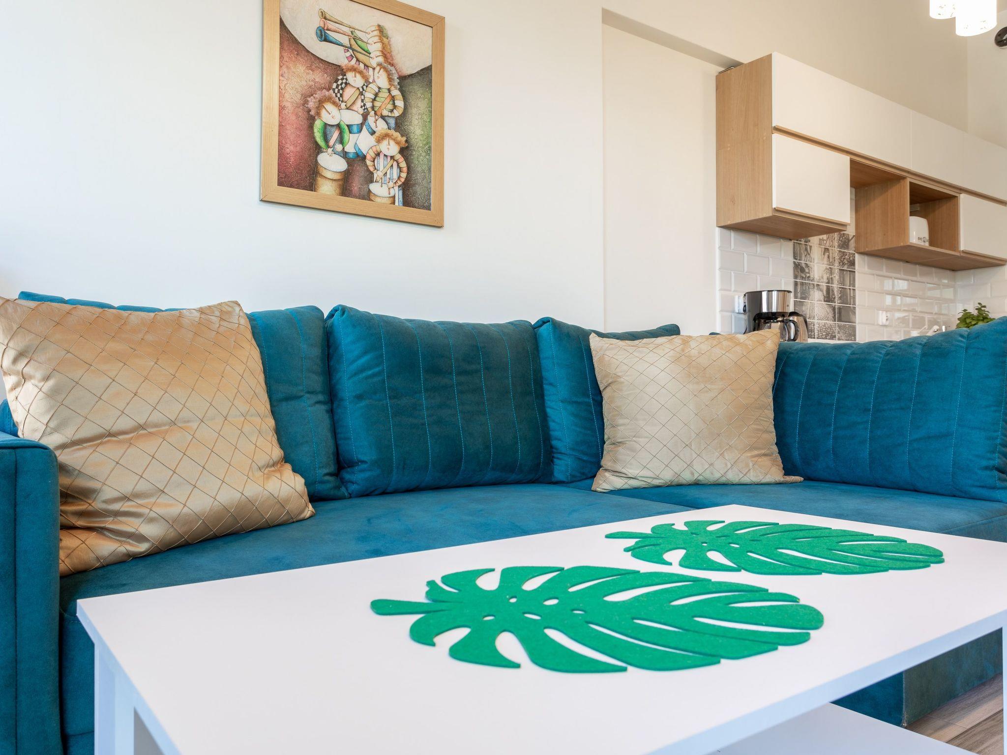 Our flat is located in a quiet neighbourhood in a modern high-rise building, which was completed in January 2020 and is part of the "Platan Complex" complex. In the immediate vicinity of the "Platan Complex" there is a fitness studio, a Thai massage studio and a bicycle hire centre. There are shops such as Biedronka supermarket and LIDL nearby, as well as a wide range of bars and restaurants.