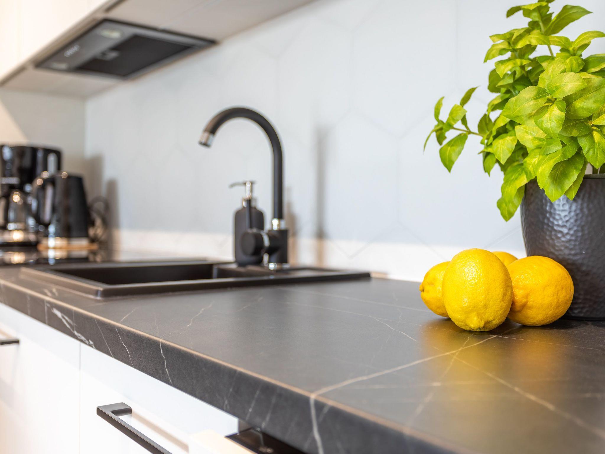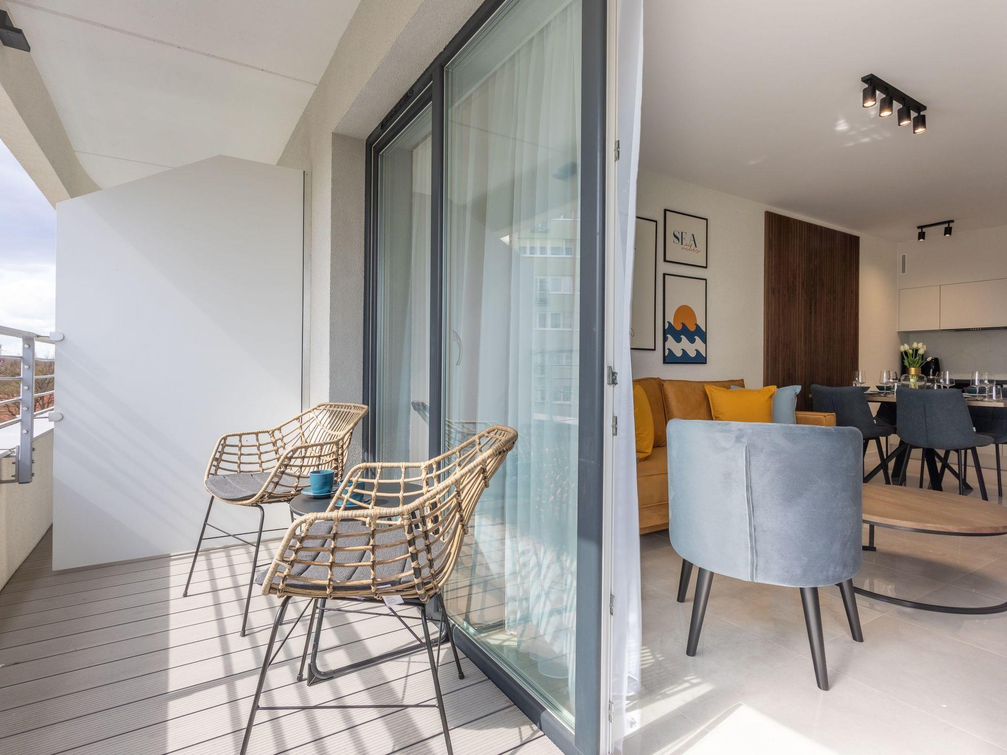 It is a very spacious and luxurious flat with two bedrooms, living room with well-equipped kitchenette and bathroom. Its total area is 55 m2. The usable area is extended by the balcony, where you can spend pleasant moments with a cup of freshly brewed coffee or a glass of your favourite wine. The interior is very originally designed, dominated by shades of grey and white, broken with a deep shade of blue and yellow, as well as beautiful wooden details discreetly smuggled into modern furniture or accessories that warm up the interior and delight with their texture and unconventional look. In addition, thanks to the large and numerous glazed areas, plenty of daylight enters the interior, which also visually enlarges the room and gives it a sense of momentum. Attention is also drawn to expressive and very modern accessories as well as interesting shapes and textures. A private outdoor car park is also available to guests - for a fee - which significantly increases travelling comfort and can be particularly desirable for families with children.
