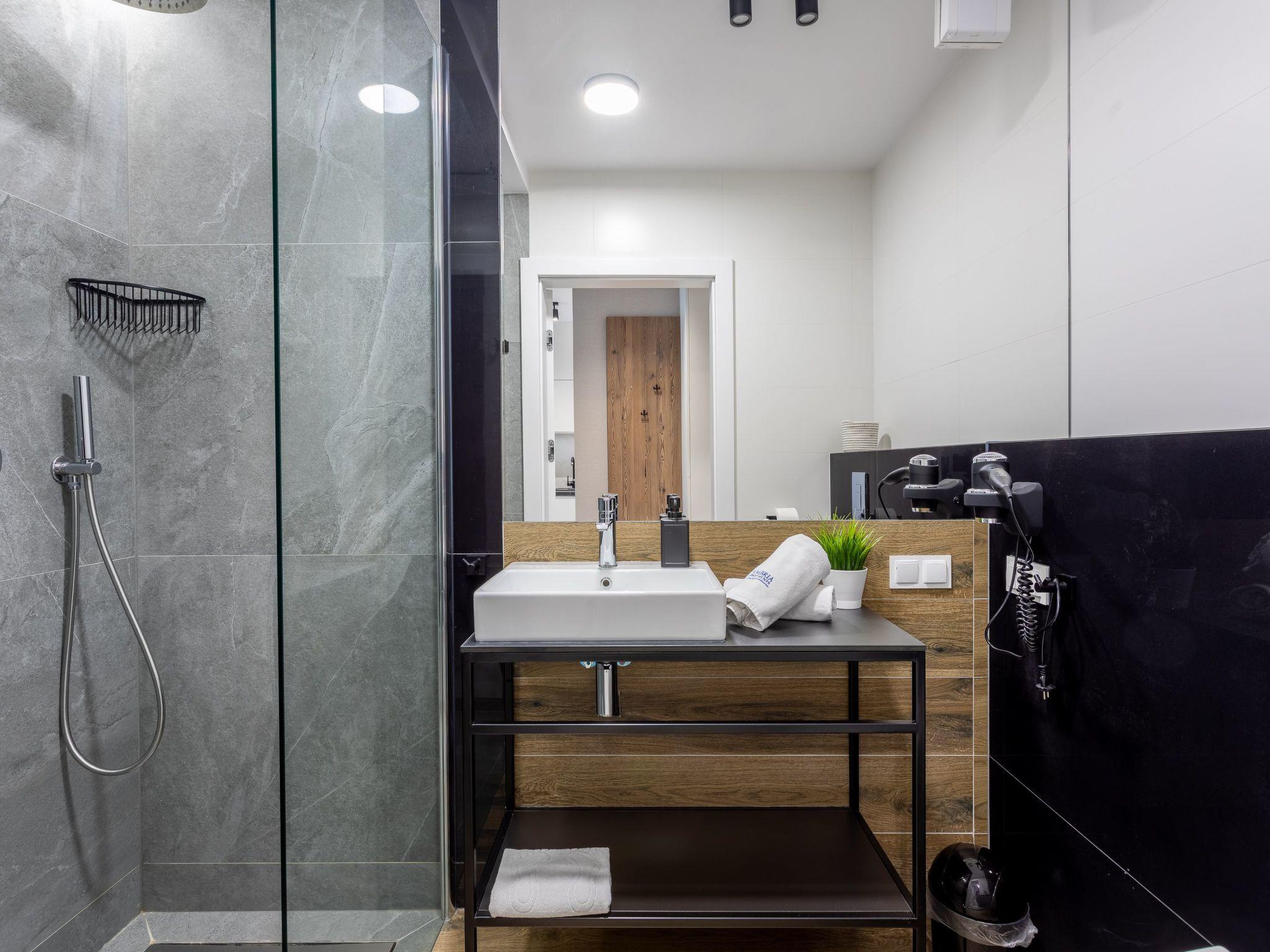It is a flat with bedroom, living room with well-equipped kitchenette, dining area and modern bathroom with total area of 35 m2. The usable area is extended by the balcony, where you can spend pleasant moments with a cup of freshly brewed coffee or a glass of your favourite wine. Very comfortable double bed in the bedroom and sofa with sleeping function in the living area ensure a restful sleep. Comfortable furnishings guarantee a pleasant stay, both for private and business purposes. It is a very modern interior designed for the comfort of residents, where functionality plays an extraordinary role, but also a cool, sky-broken grey, which not only emphasises the unique maritime atmosphere, but also indirectly refers to minimalist style, which offers a pleasant rest after a whole day in the sun. Guests also have a private outdoor car park at their disposal - for a fee - which significantly increases the comfort of travelling and can be particularly desirable for families with children.