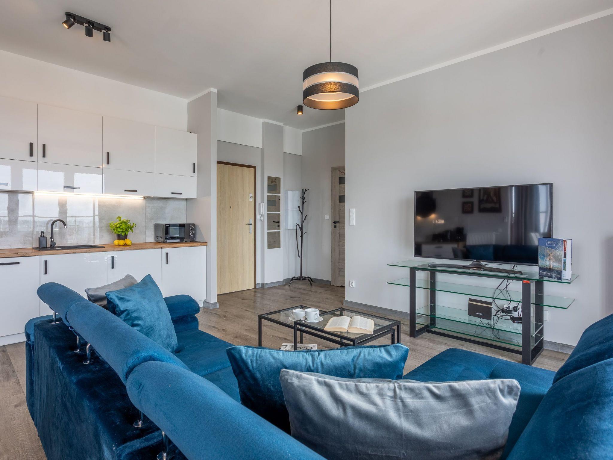 The "Tower 97" flat in Swinoujscie is particularly appreciated by our guests for its excellent location, high standard of furnishings and breathtaking views of the city, the sea and Golm Mountain from the windows. It is located in a modern building that was put into operation in January 2020 and is part of the Platan complex.