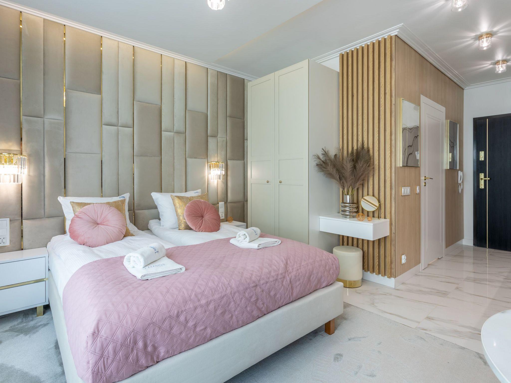 It consists of a living, dining and sleeping area, a fully equipped kitchenette and a spacious bathroom with a total area of 24m2. Good facilities guarantee a pleasant stay, both for private and business purposes. The interior is charming, tasteful and cosy: full of bright, warm tones that, together with modern furniture and elegant accessories, create an exquisite whole where you can rest and actively indulge your interests and passions. A beautiful decoration on the wall, directly behind the headboard, emphasises the charm of this place and ... ignites the senses.