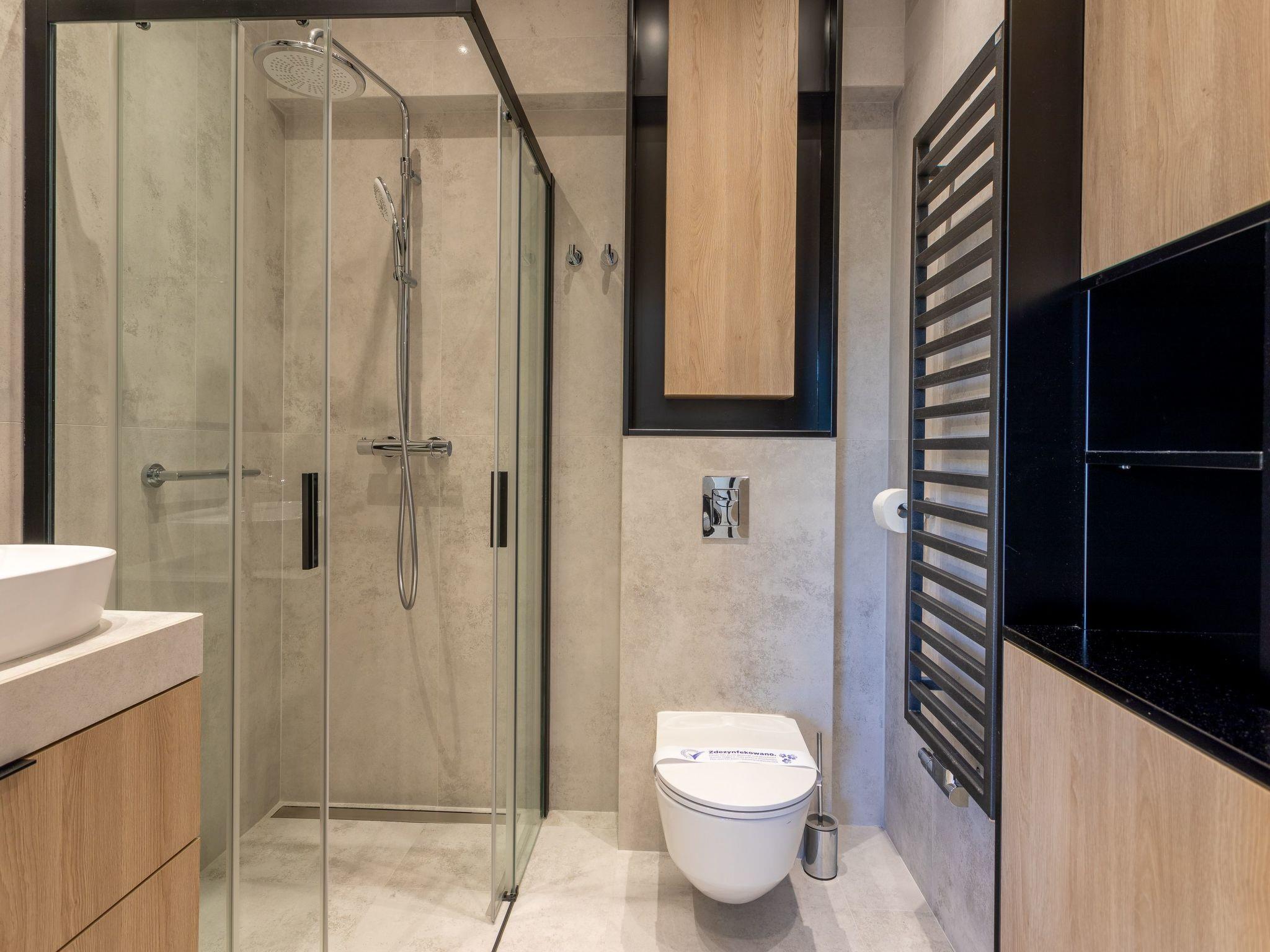 The "Tower 24" flat in Swinoujscie is a place of rest and relaxation loved by our guests. Our flat is located in a quiet neighbourhood in a modern high-rise building, which was completed in January 2020 and is part of the "Platan Complex" complex. In the immediate vicinity of the "Platan Complex" there is a fitness studio, a Thai massage studio and a bicycle hire centre. There are shops such as Biedronka supermarket and LIDL nearby, as well as a wide range of bars and restaurants. The flat is also just 700 metres from the German-Polish border crossing. The nearby UBB train station also makes it easy for you to travel to Germany.