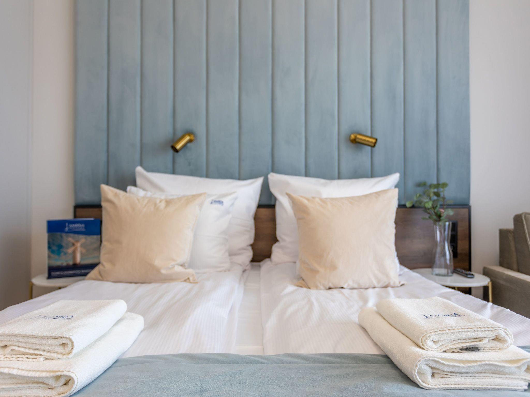 Comfortable and convenient furnishings guarantee a pleasant stay, both for private and business purposes. The interior is charming, tasteful and cosy: full of bright, warm tones that, together with modern furniture and elegant accessories, create an exquisite yet minimalist whole where you can rest and actively indulge in your interests and passions. A beautiful decoration on the wall, just behind the headboard, emphasises the charm of this place and ... ignites the senses.