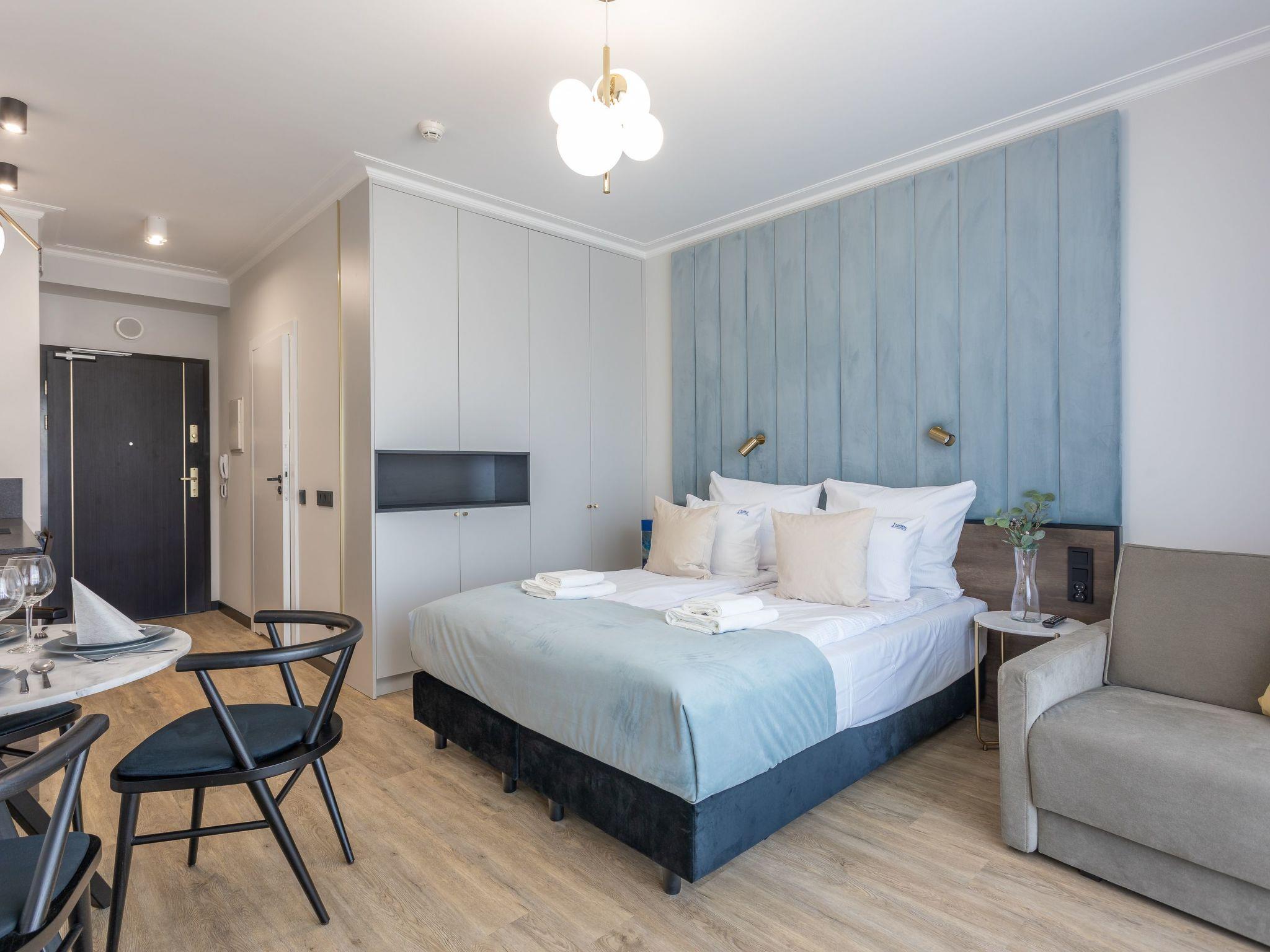 "Lividus 343" in Swinoujscie is a very elegant flat in an exclusive apartment building from 2021 with a restaurant, café and SPA area. It consists of a living, dining and sleeping area, a fully equipped kitchenette and a spacious bathroom with a total area of 27 m2. Another advantage is the balcony, which is a practical and functional extension of the flat and allows for moments of relaxation in the fresh air.