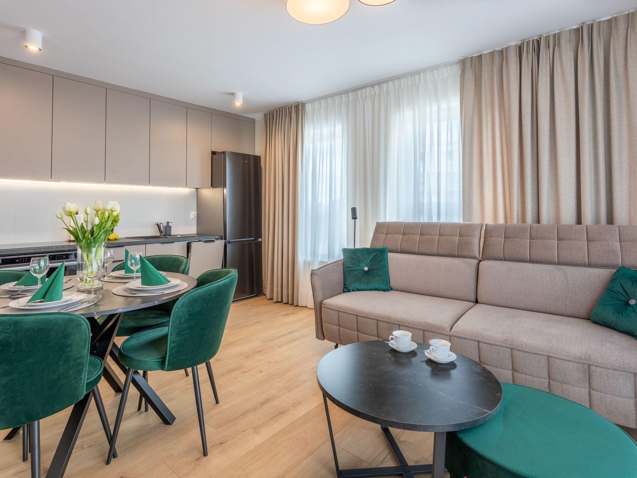 Flat "Sun Towers B107" in Swinoujscie is an elegant flat in a building built in 2022 with two bedrooms, living room with well-equipped kitchenette, dining area and modern bathroom with a total area of 60 m2, as well as a very large balcony, which is a perfect extension of the usable area. Very comfortable double beds in the bedrooms ensure a peaceful night's sleep. A unique interior whose insulated space is filled with earthy colours and creates an extremely cosy character and atmosphere of a mysterious and wild island. It is important to be able to come back after a day of sea activities and relax in a comfortable and high-quality interior. Guests also have access to a parking space in the underground car park - at an extra charge - which significantly increases the comfort of travelling and is particularly desired by families on holiday with children.