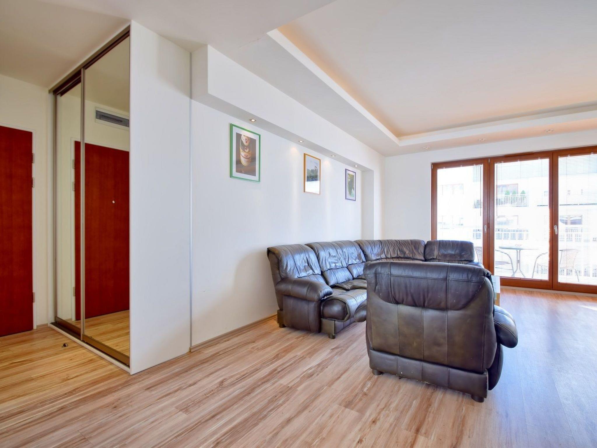 The flat has been furnished with the comfort of the residents in mind: Large, expansive leather furniture creates a spacious seating area where you can breathe in your favourite way and spend time with your loved ones, as well as arrange as you wish, adapting to your own needs and expectations, thereby also increasing ease of use. A separate kitchen is an additional space that gives you the freedom to prepare and eat meals.