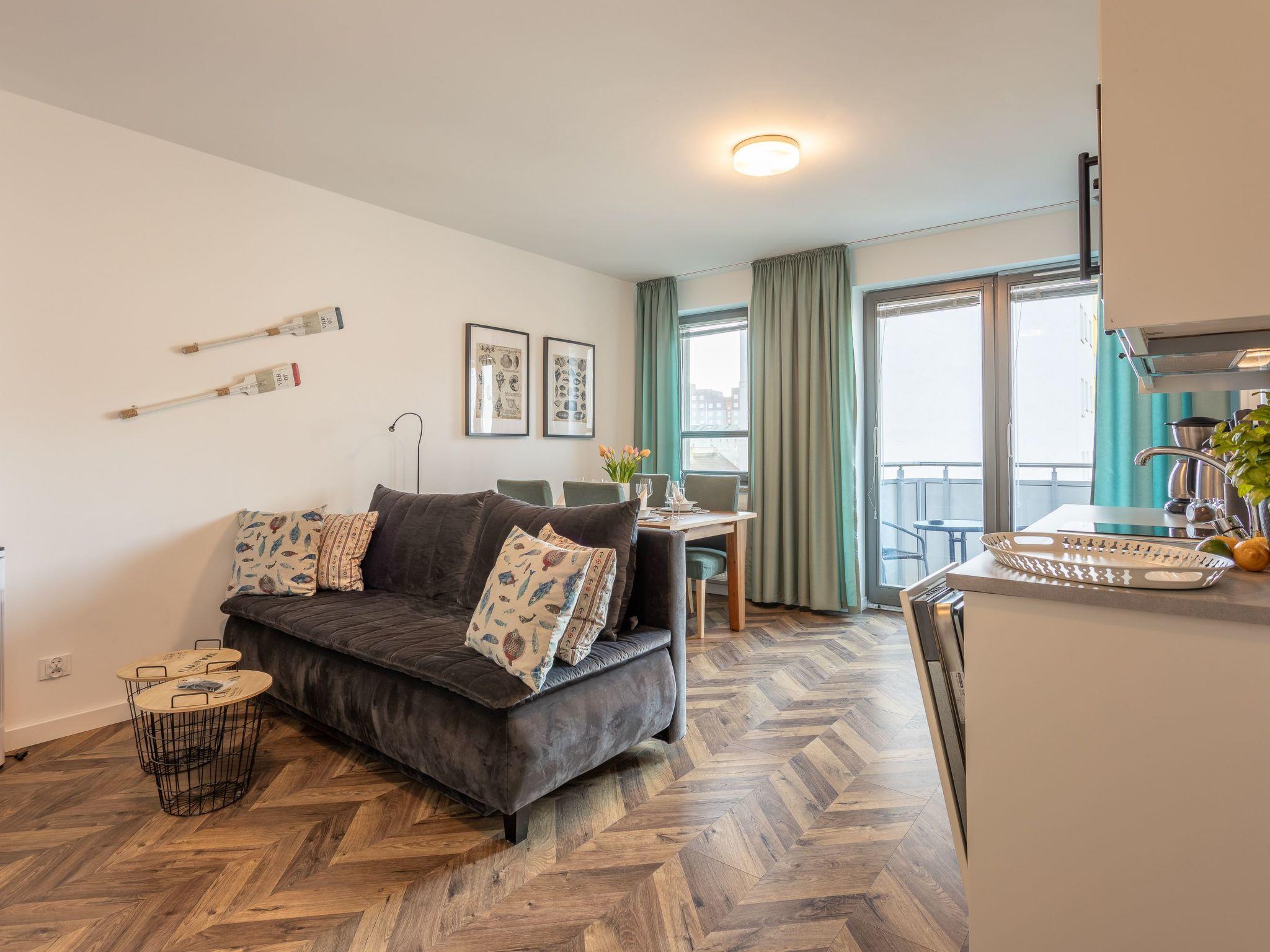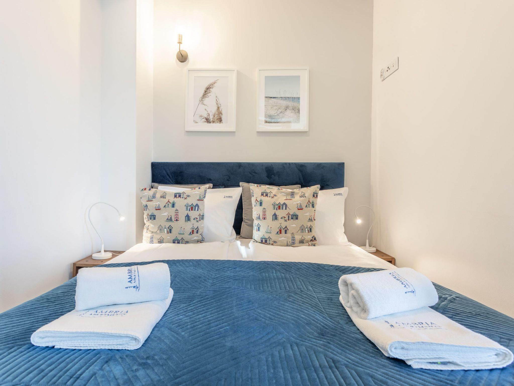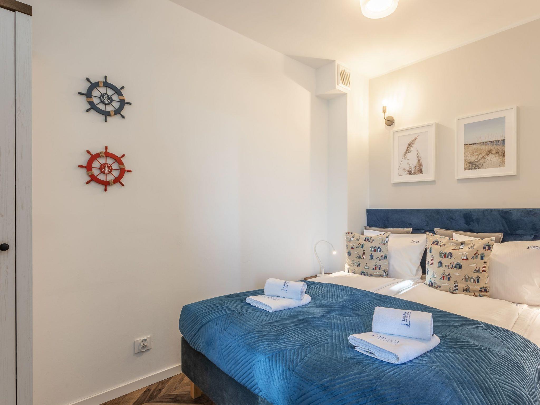 It is flat with one bedroom, living room with well-equipped kitchenette and modern bathroom with total area of 35 m2. The flat is very bright: white, grey and all shades of turquoise dominate, but the key role is played by original accessories with a maritime theme. Blue Rose I is like a ship on the high seas! With its atmosphere, it constantly reminds guests what a fantastic place they are ... Time for a fish or maybe a cruise?