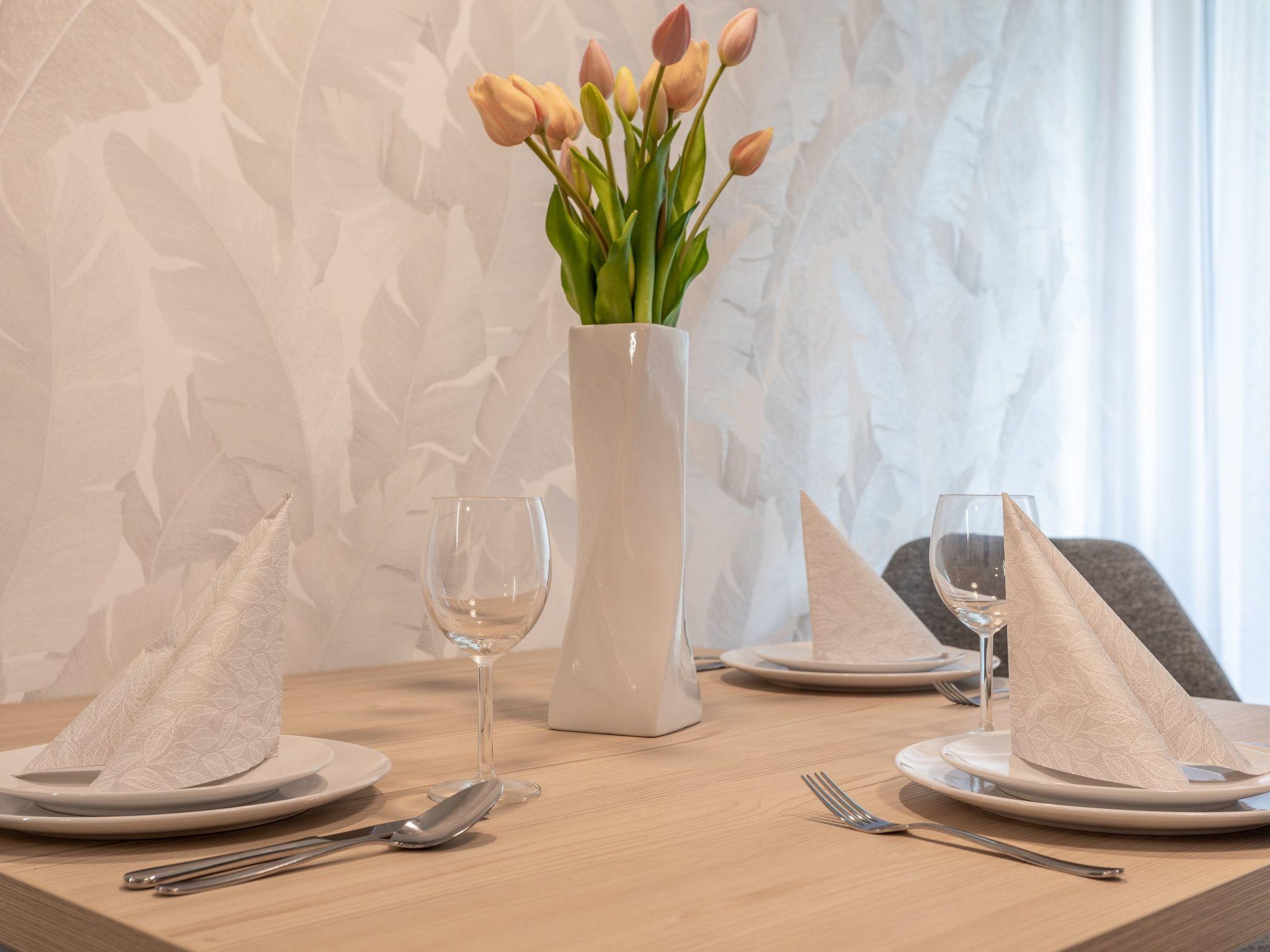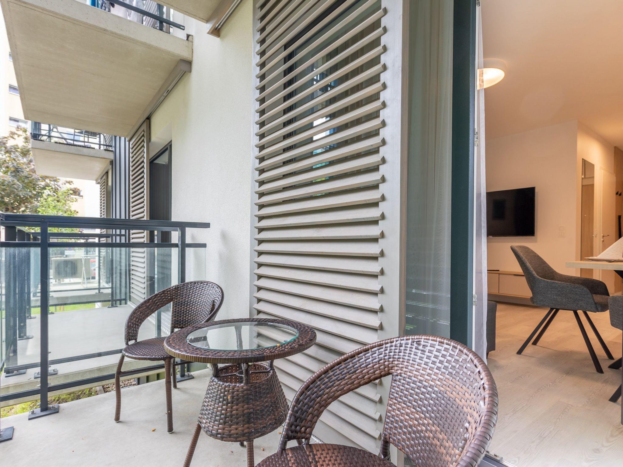 It is a flat with a very spacious bedroom, a living room with a well-equipped kitchenette and a modern bathroom with a total area of 41 m2, as well as a large balcony. The interior is dominated by light, extremely mild colours: White, grey and beige. The flat is also extremely cosy and is characterised by simple shapes and high quality. Numerous textile and decorative accessories complement the room and make you feel at home. It is ideal for people who want to spend some time on the sofa during their stay, read a book or have breakfast in an extremely comfortable bed.