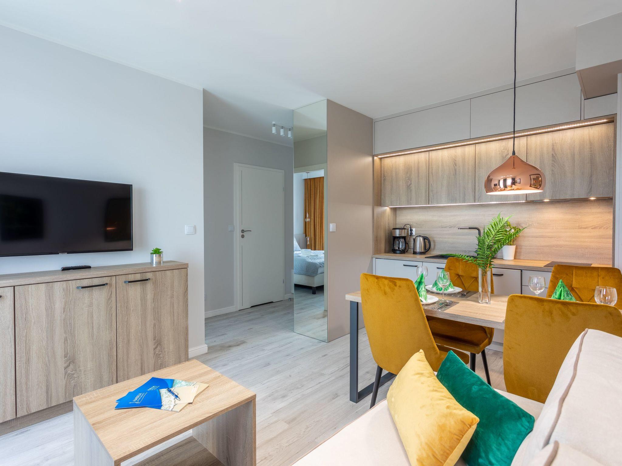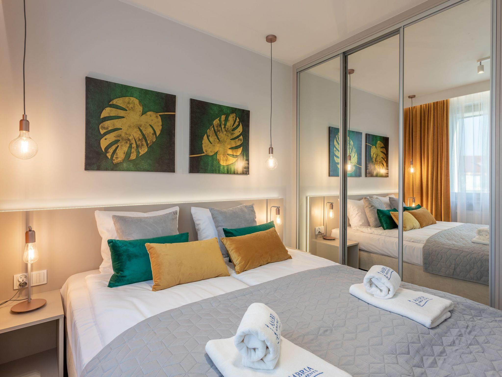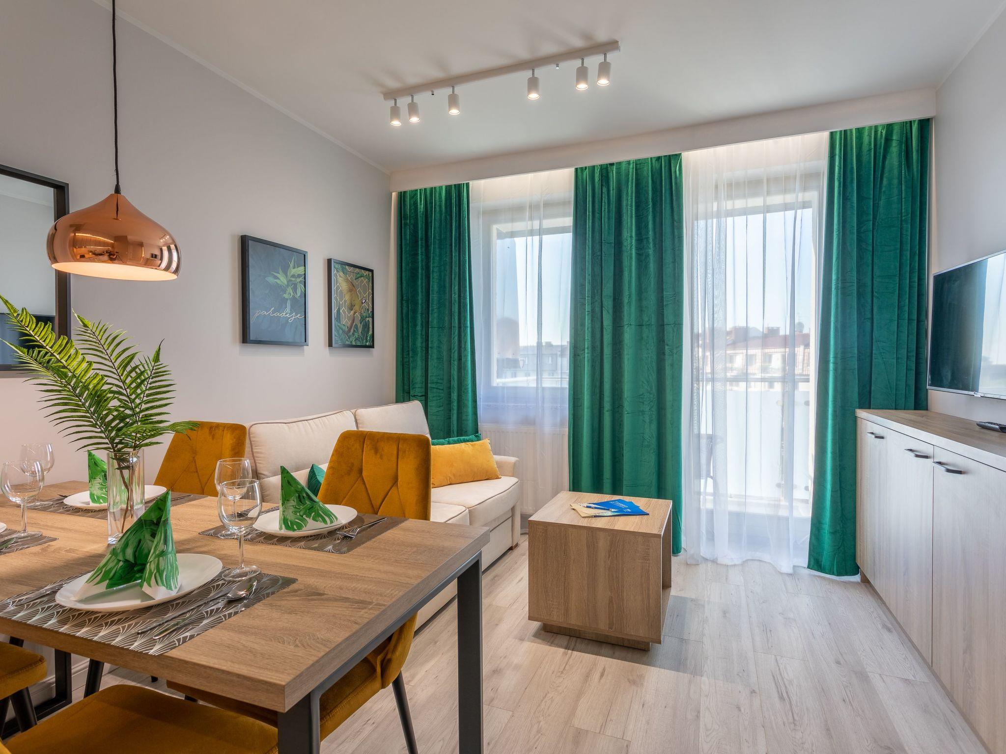 It is a flat with very spacious bedrooms, living room with well-equipped kitchenette, dining area and modern bathroom with total area of 30 m2, as well as a balcony. A very comfortable double bed in the bedroom and a sofa with sleeping function and Italian folding frame ensure a good night's sleep. It is an unusual interior, dominated by the colours of the earth, especially yellow and green, which not only enliven the muted space, but also give it an exceptionally cosy character - evoking the unique atmosphere of a mysterious wild island and positively influencing the well-being and senses of guests. It is important to return to the paradisiacal sanctuary after a day of activities by the sea and indulge in blissful relaxation in comfort.