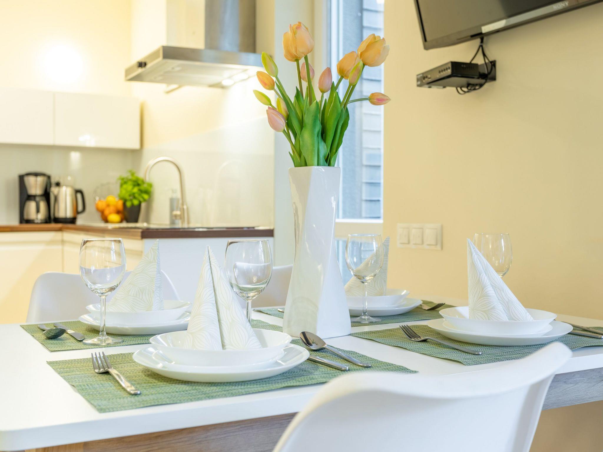 It is a very spacious and fully equipped flat with one bedroom, living room with kitchenette and bathroom with total area of 41 m2. A very large terrace with a seating set significantly increases the space. It is the perfect place to feast with your loved ones and spend long summer evenings in comfort and privacy. The flat is decorated in light colours, dominated by white, beige and green - evoking associations with the beach, sun and the forest. The interior is functional and well organised, making it an ideal place to rest, relax and rejuvenate after the challenges of everyday life.