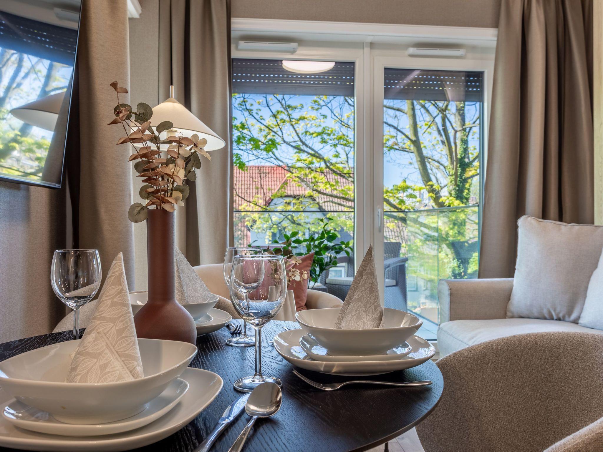 In this beautiful holiday flat with its maritime decor, you will immediately feel like you are in the Hamptons! The atmosphere of the flat will make you feel like you're on a beach in the summer sun: White and beige colours dominate. Order and harmony reign here, and at the same time you can feel the atmosphere of the sea, which attracts with its mystery, seduces with its uniqueness and promises extraordinary moments far away from everyday life. You must give in to this temptation - it is an invitation to a wonderful holiday adventure and extraordinary experiences. It is a cosy place for people who want to feel at home in addition to the attractions by the sea: Spend some time on the sofa watching TV, listening to a good audio book or reading your favourite book. Attention is also drawn to expressive and very modern accessories as well as interesting shapes and textures - all with delicate and original marine motifs. You must board this deck without a doubt !