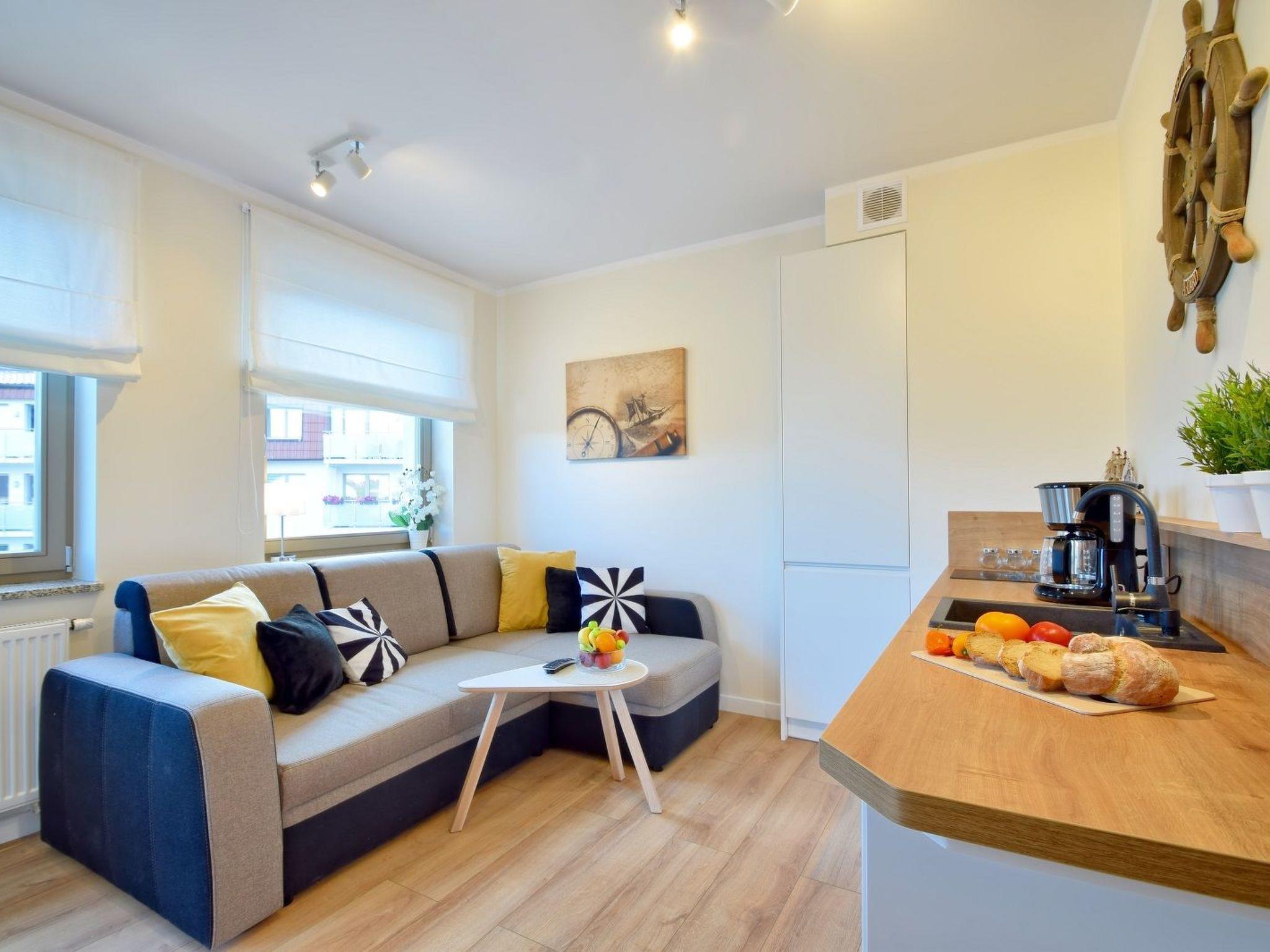 It is a flat with very spacious bedrooms, living room with a well-equipped kitchenette, dining area and a modern bathroom with a total area of 30 m2, as well as a balcony where you can move at any time to get some fresh sea air. The atmosphere of the flat conveys a feeling of being on a beach in the summer sun: white, beige and yellow dominate. Order and harmony reign here, and at the same time you can feel the atmosphere of the sea, which attracts with its mystery, seduces with its uniqueness and promises extraordinary moments that are so far removed from everyday life. You must give in to this temptation - these are invitations to a wonderful holiday adventure and extraordinary experiences.