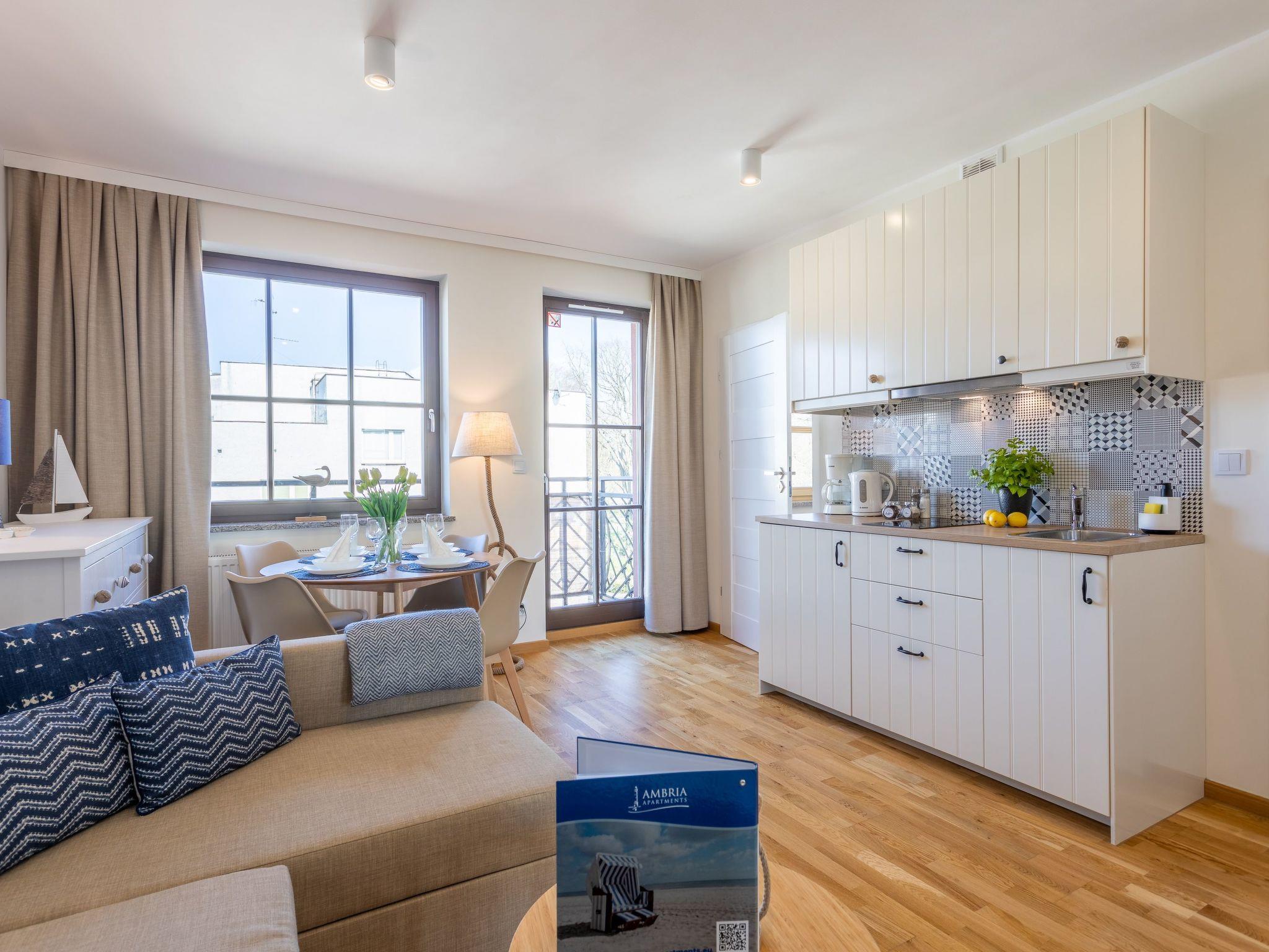 It is a flat with a bedroom, living room with equipped kitchenette and modern bathroom with a total area of 27 m2 and a balcony where you can move at any time to take in the fresh sea air. The atmosphere of the flat will make you feel like you're on a beach in the summer sun: White and beige dominate. Order and harmony prevail here, while at the same time you can feel the atmosphere of the sea, which attracts you with its mystery, seduces you with its uniqueness and promises extraordinary moments away from everyday life. You must give in to this temptation - these are invitations to a wonderful holiday adventure and extraordinary experiences.