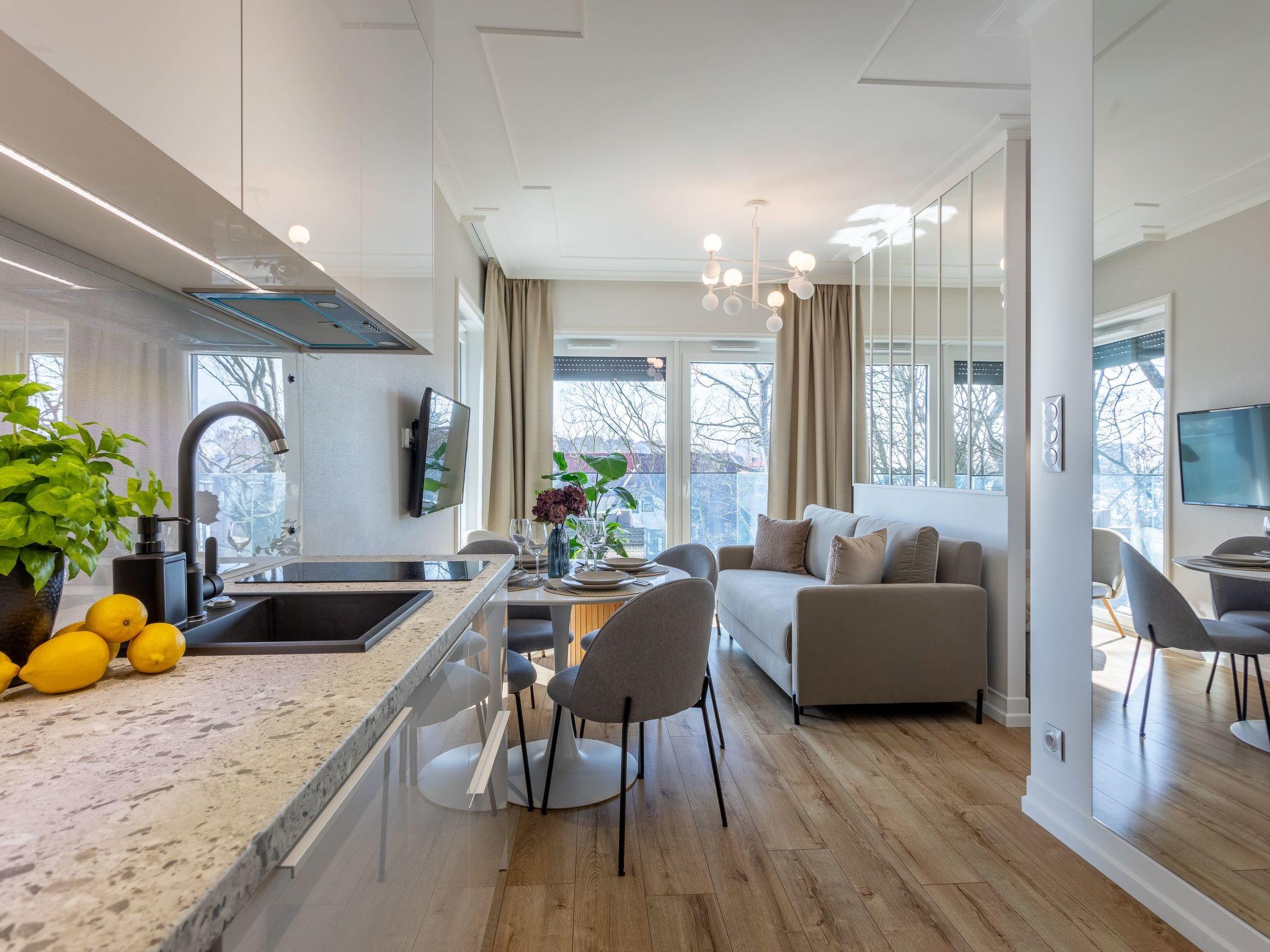 The flat right in the harbour "Jachtowa 33" is located in an apartment building built in 2023, in the immediate vicinity of the showpiece of Swinoujscie - the spa park with an area of 58 ha. The great advantages of this seaside flat are the surrounding green park, numerous health trails and incredible proximity to an enchanting beach, where - depending on your preferences and tastes - you can laze around or enjoy a wide range of attractions related to water sports and recreation.