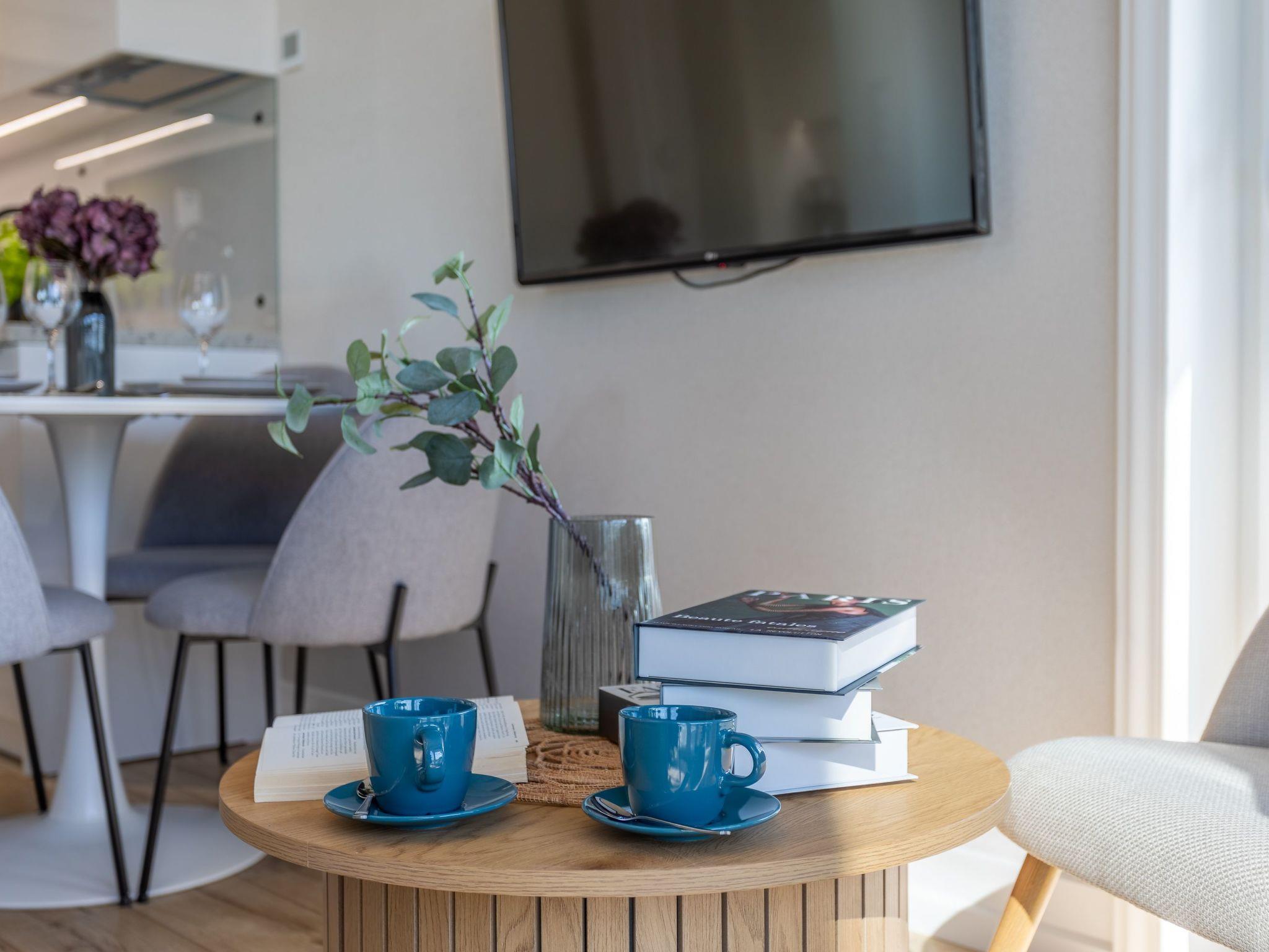In this beautiful holiday flat with its maritime decor, you will immediately feel like you are in the Hamptons! The atmosphere of the flat will make you feel like you're on a beach in the summer sun: White and beige colours dominate. Order and harmony reign here, and at the same time you can feel the atmosphere of the sea, which attracts with its mystery, seduces with its uniqueness and promises extraordinary moments far away from everyday life. You must give in to this temptation - it is an invitation to a wonderful holiday adventure and extraordinary experiences. It is a cosy place for people who want to feel at home in addition to the attractions by the sea: Spend some time on the sofa watching TV, listening to a good audio book or reading your favourite book. Attention is also drawn to expressive and very modern accessories as well as interesting shapes and textures - all with delicate and original marine motifs. You must board this deck without a doubt !