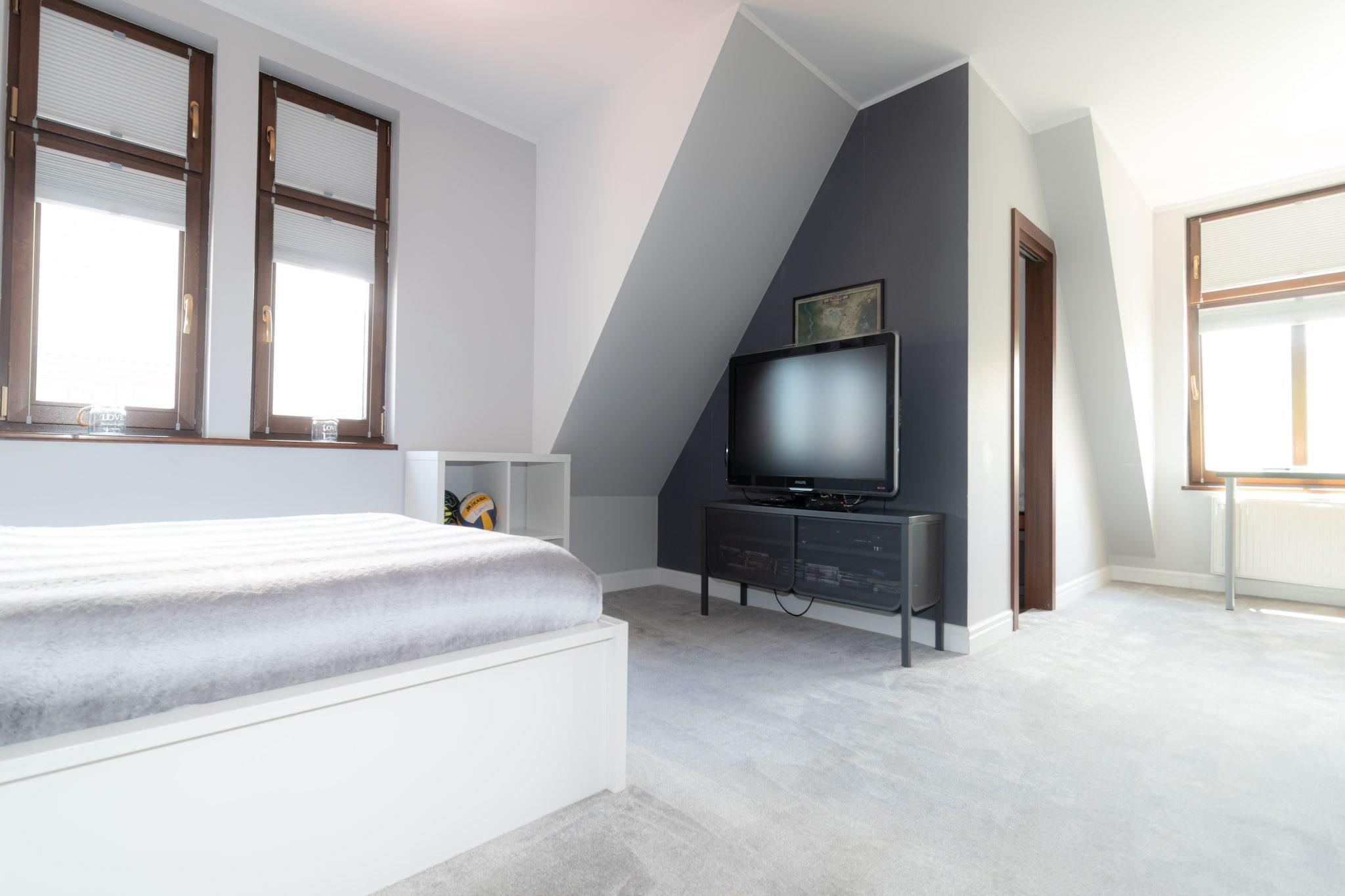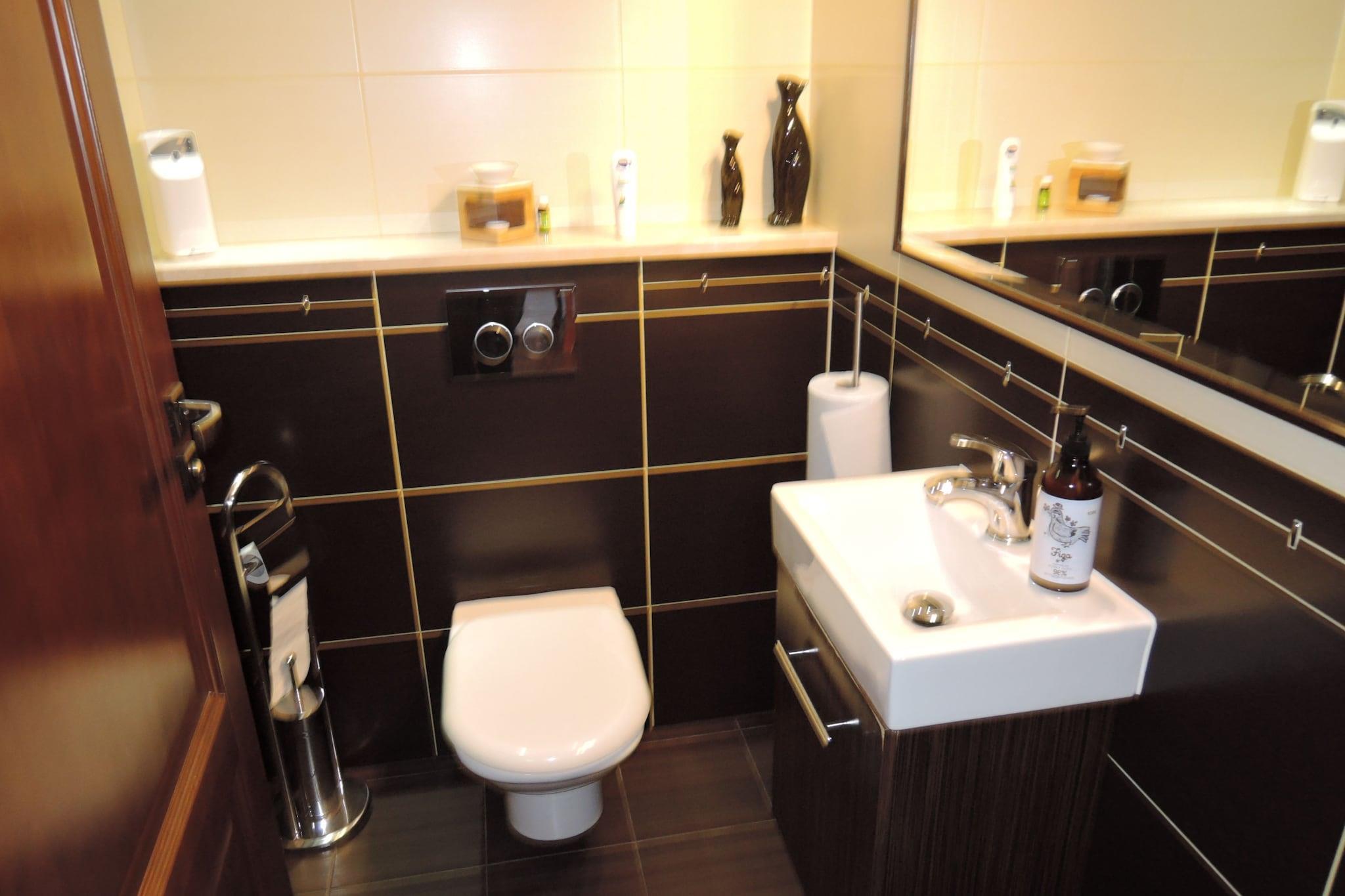 Perfekt til store familier eller til ferie med venner: Rummeligt sommerhus med 300 kvadratmeter boligareal fordelt på tre etager. I alt fem soveværelser og en stue er smagfuldt og af høj kvalitet indrettet. På varme sommerdage kan du med sikkerhed sidde i den velholdte have og på den store terrasse med siddepladser. Intet står i vejen for et feel-good-program - det sørger løbebåndet, boblebadet og den infrarøde sauna for. Dit feriehus har en rolig beliggenhed, cirka fem minutter i bil fra stranden ved Østersøen, lige bag den tysk-polske grænse. Hvis du kan lide lidt travlhed, så tag til centrum af Swinoujscie (Swinoujscie), hvor der er mange butikker, restauranter og caféer. Detaljer: Turistskat Aktiviteter i nærheden: Swinoujscie, beliggende nær den polsk-tyske grænse, er det største feriested på øen Wolin og har en attraktiv turist- og gastronomisk infrastruktur. Der tilbydes en bred vifte af vandsportsaktiviteter, og lystfiskere kan altid finde et roligt sted ved havet, søen eller lagunen i Szczecin for at kaste deres stænger. Det vigtigste transportmiddel bør være cykel, båd eller dine egne fødder for at udforske det smukke landskab uden for byen Swinoujscies. Talrige, godt afmærkede cykelstier inviterer til skønne ture på cykel. For dem, der foretrækker at være på vandet, er der masser af muligheder: ture med kano, vandcykler eller motorbåd er lige så muligt som en guidet sejltur fra en af de mange havne i området. Ikke egnet til personer med nedsat mobilitet