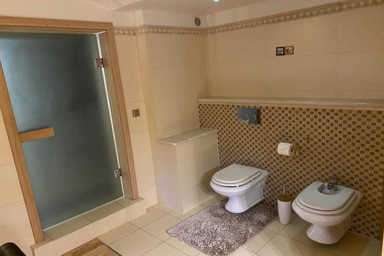 Stueetage: (åbent køkken(spisebord, elkedel, cooker, komfur(Komfur med fire kogeplader, induktion), espressomaskine, ovn, mikrobølgeovn, opvaskemaskine , køle-fryseskab), stue / spisestue(Fjernsyn(parabol, Tyske TV-kanaler), sofahjørne), soveværelse(dobbeltseng, Fjernsyn), soveværelse(dobbeltsovesofa), badeværelse(bruser, håndvask, toilet), badeværelse(Bubble bath, bruser, infrarød sauna, håndvask, toilet, bidet), toilet(håndvask, toilet)) På 1. etage: (soveværelse(dobbeltseng, Fjernsyn), soveværelse(enkeltsovesofa, Fjernsyn), soveværelse(enkeltsovesofa), badeværelse(bruser, håndvask, toilet)) carport, varme(gas), terrasse, have, havemøbler, grill, biljard, fitnessapparater