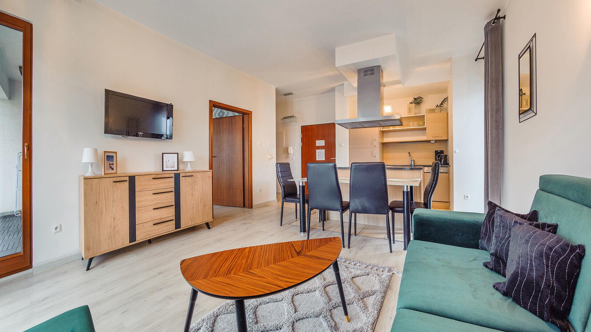 Wir bieten Ihnen Apartments direkt an einem breiten, sandigen Strand gelegen. Gleich nebenan befindet sich eine Promenade, wo Sie viele gastronomische Einrichtungen und Geschäfte finden. Die Baltic Park Plaza Anlage liegt auf einer Düne. Einige Apartments bieten einen schönen Blick auf das Meer. Alle sind luxuriös eingerichtet und verfügen über eine voll ausgestattete Küchenzeile. Das Rauschen des Meeres ermöglicht Ihnen einen komfortablen Aufenthalt, fernab vom Stadttrubel.
