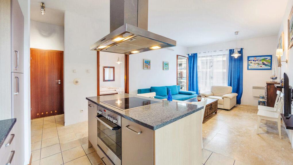Wir bieten Ihnen Apartments gleich an einem breiten Sandstrand an. Im Teil der Apartments gibt es eine schöne Aussicht aufs Meer.