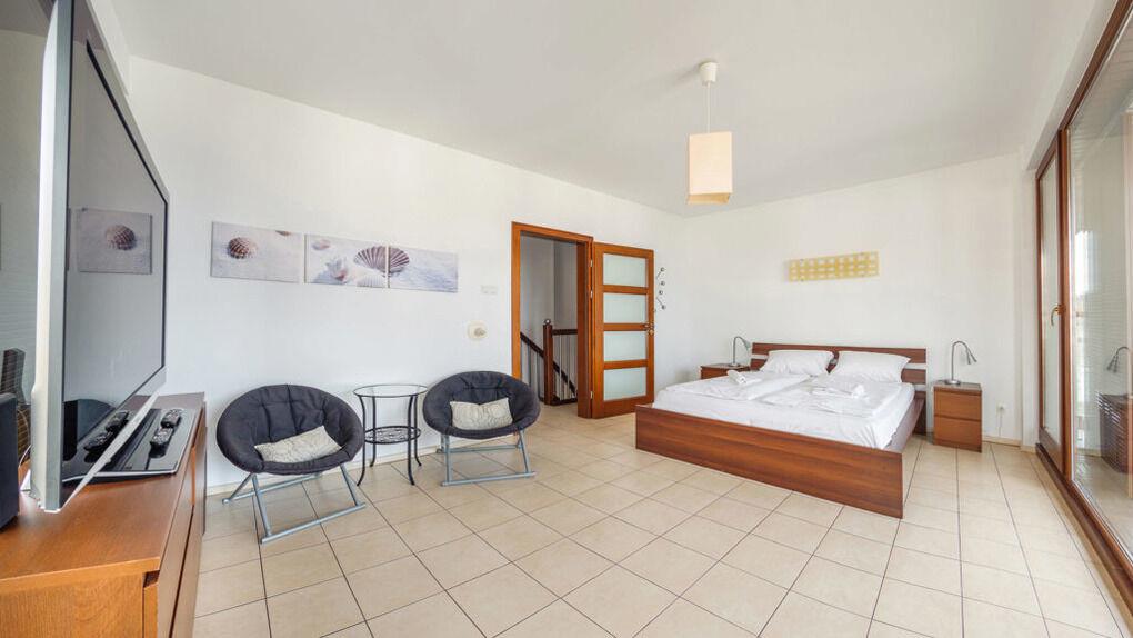 Wir bieten Ihnen Apartments gleich an einem breiten Sandstrand an. Im Teil der Apartments gibt es eine schöne Aussicht aufs Meer.