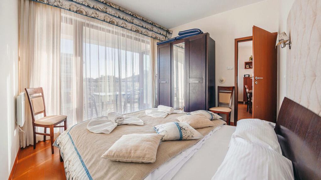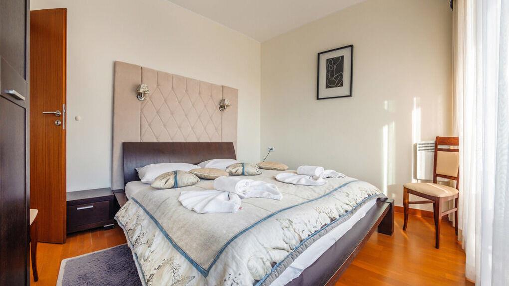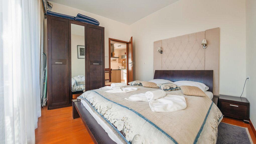 Wir bieten Ihnen Apartments gleich an einem breiten Sandstrand an. Im Teil der Apartments gibt es eine schöne Aussicht aufs Meer.
