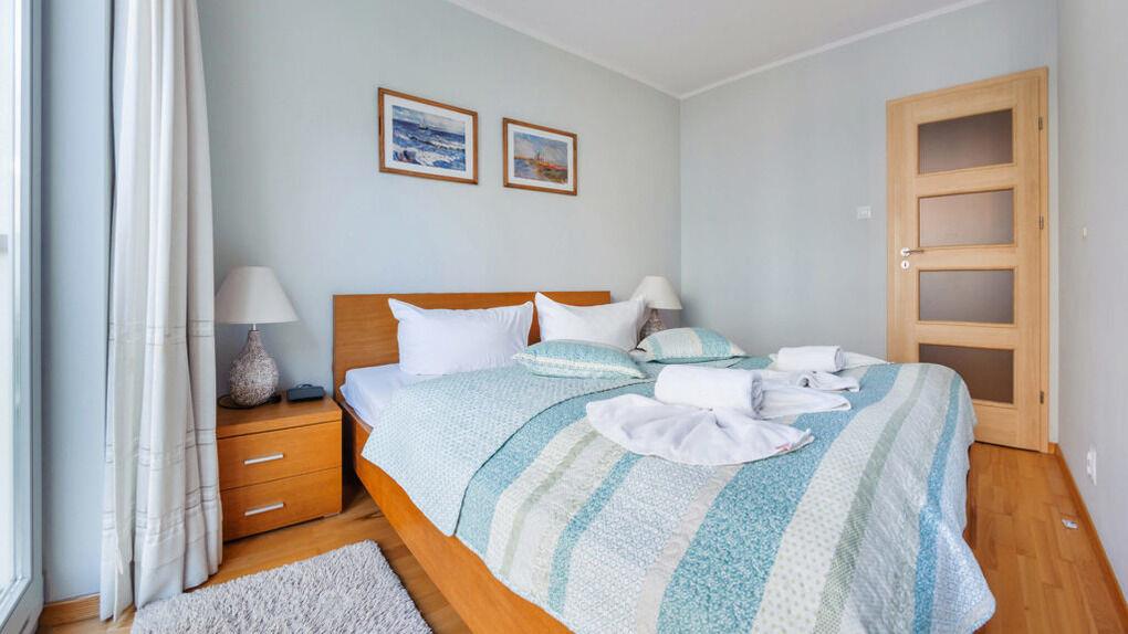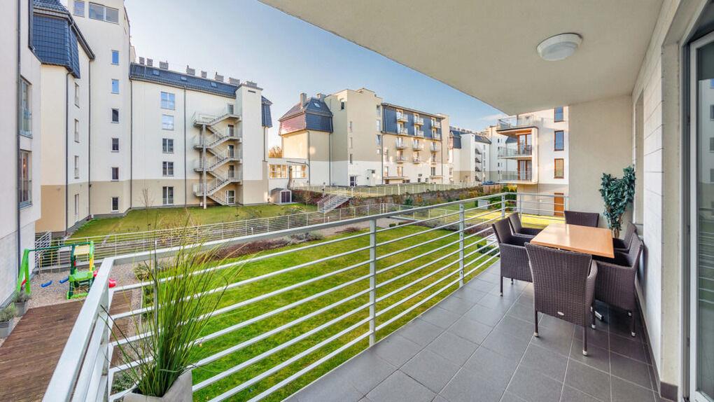 Wir laden Sie in moderne Apartments in der Nähe der Spazierpromenade ein. Die Anlage liegt in der Nähe des Kurparks und des Strandes.