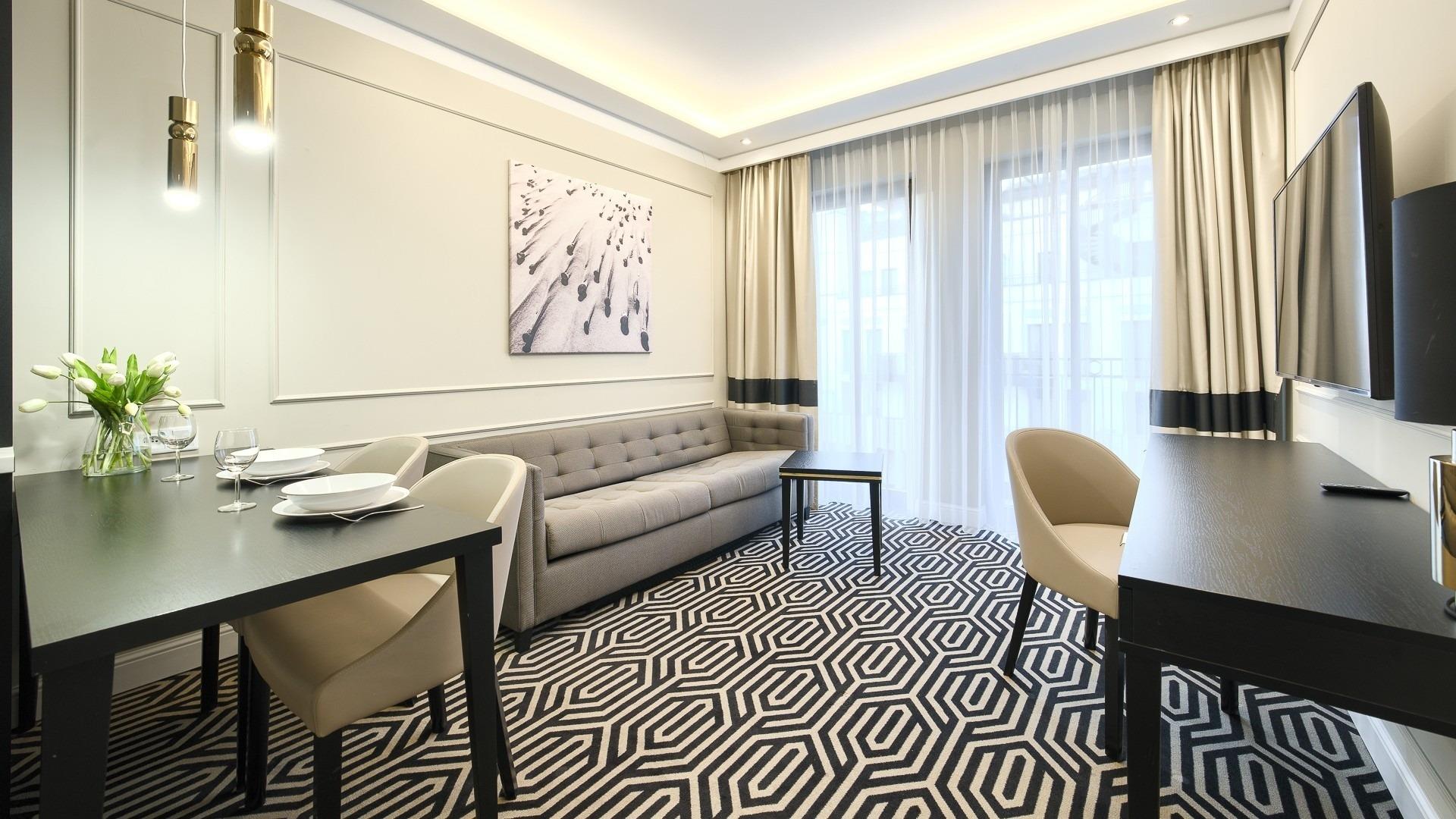- Haustiere sind in der ausgewählten Wohnung erlaubt. Die Kosten für den Aufenthalt mit einem Haustier betragen 40 PLN pro Tag.