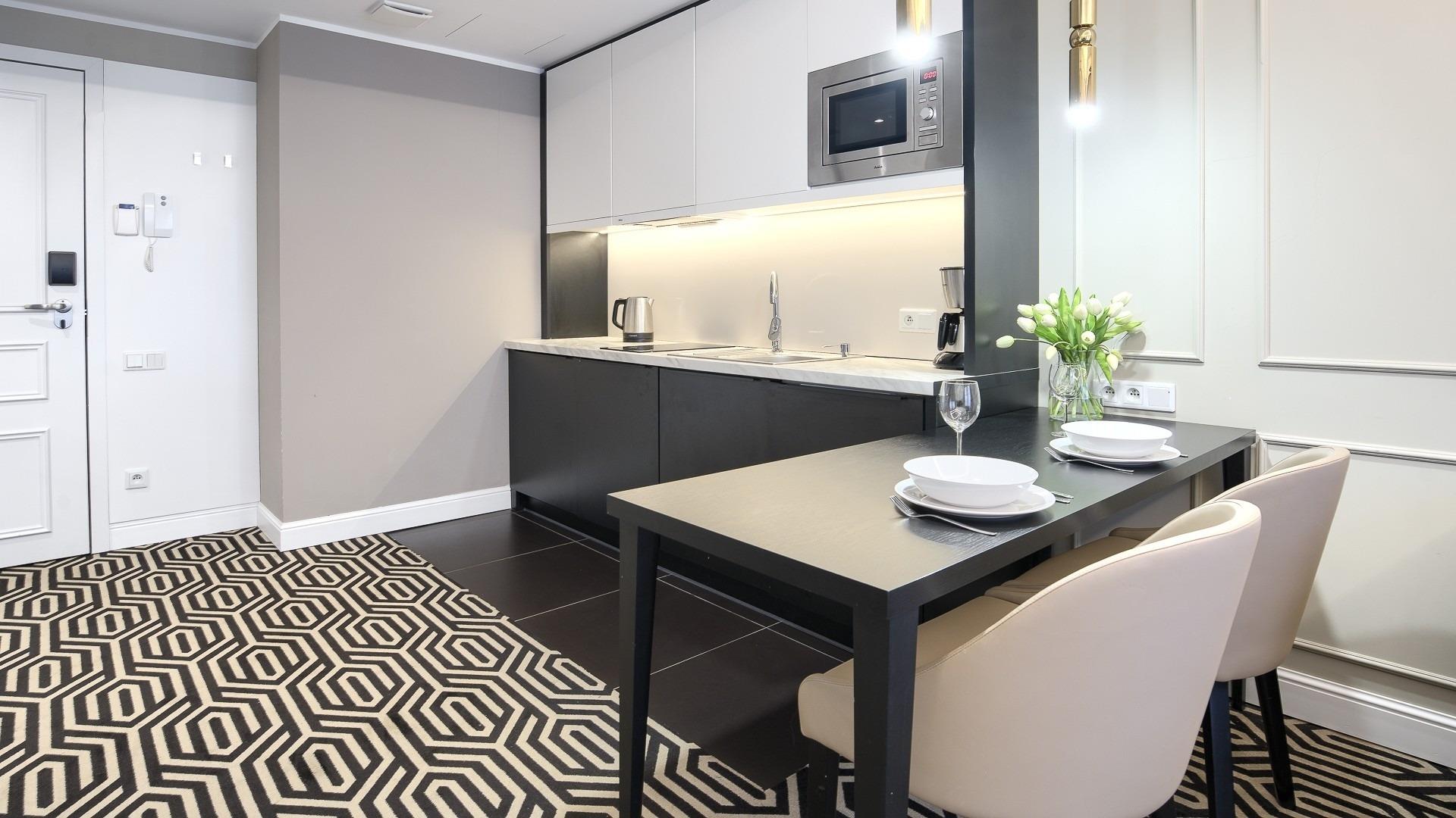 • Haustiere sind in der ausgewählten Wohnung erlaubt. Die Kosten für den Aufenthalt mit einem Haustier betragen 40 PLN pro Tag.