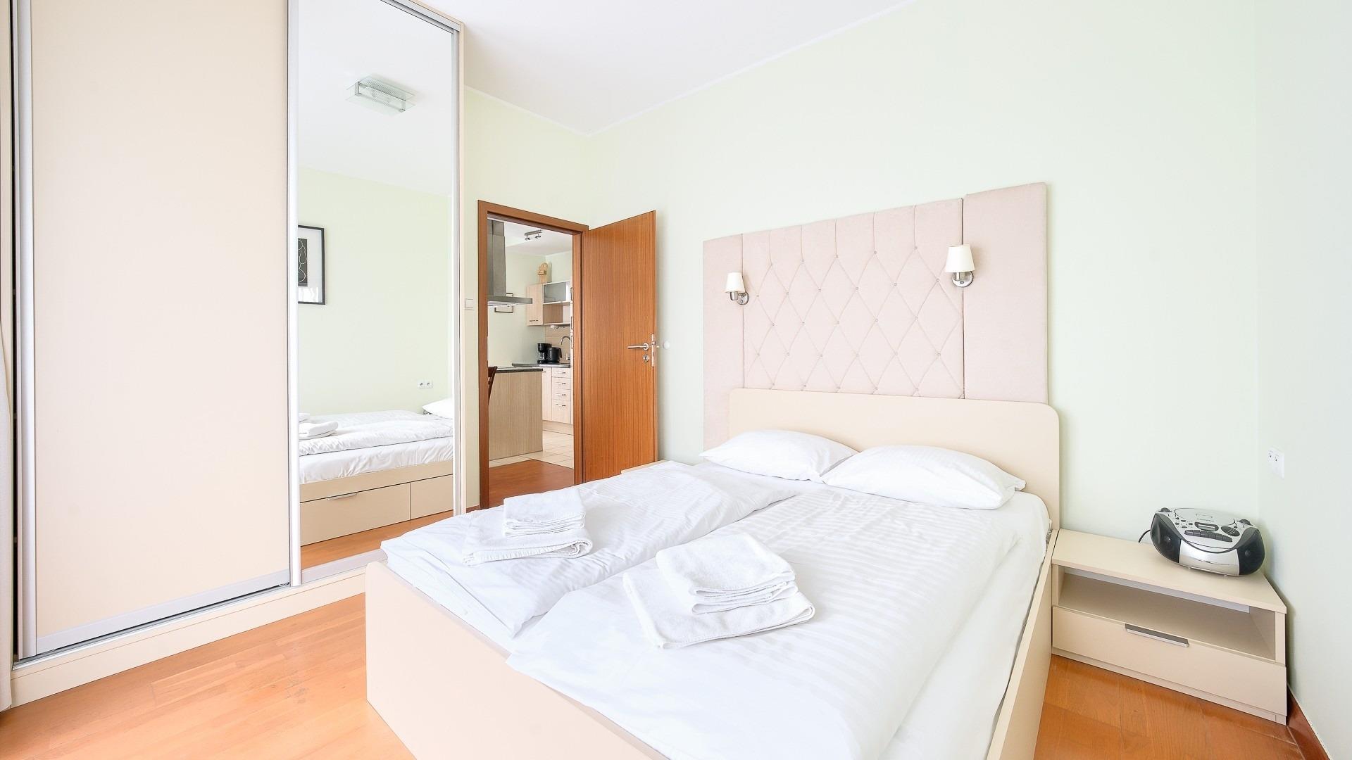 • Haustiere sind in der ausgewählten Wohnung erlaubt. Die Kosten für den Aufenthalt mit einem Haustier betragen 40 PLN pro Tag.