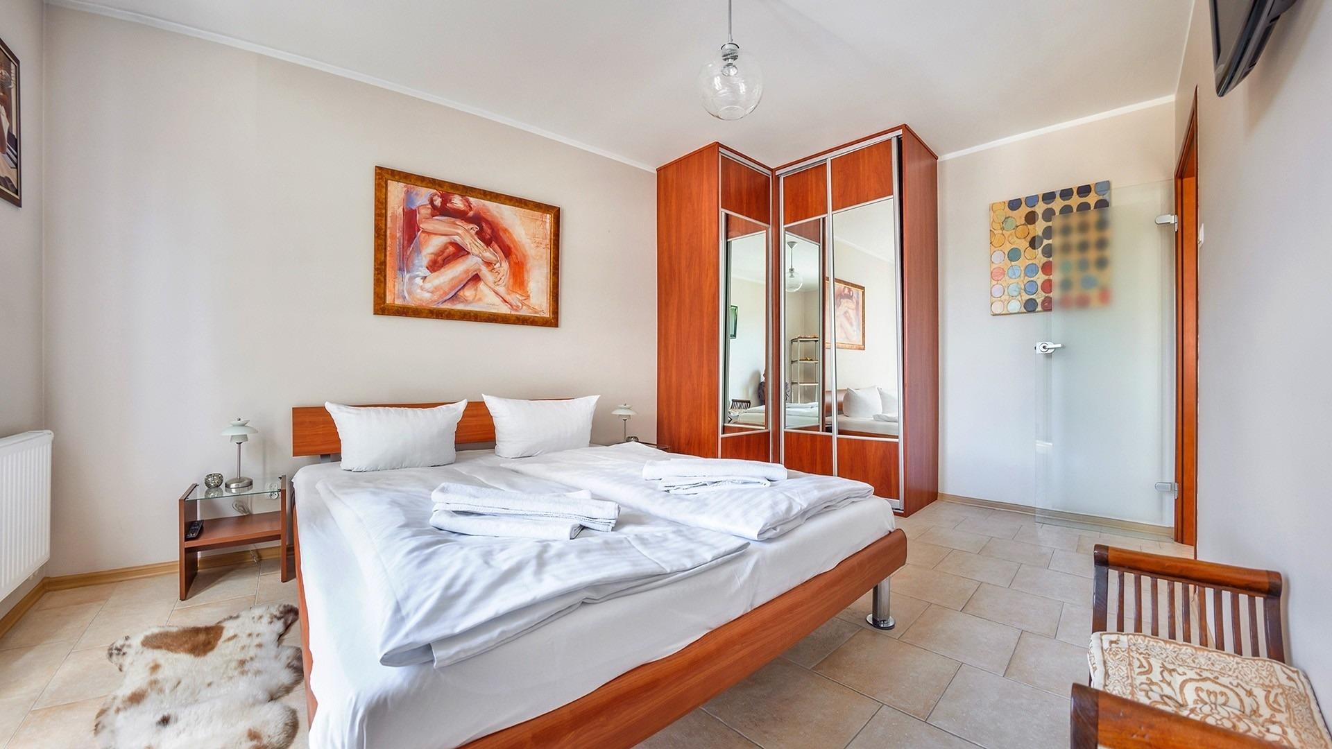 • Haustiere sind in der ausgewählten Wohnung erlaubt. Die Kosten für den Aufenthalt mit einem Haustier betragen 40 PLN pro Tag.