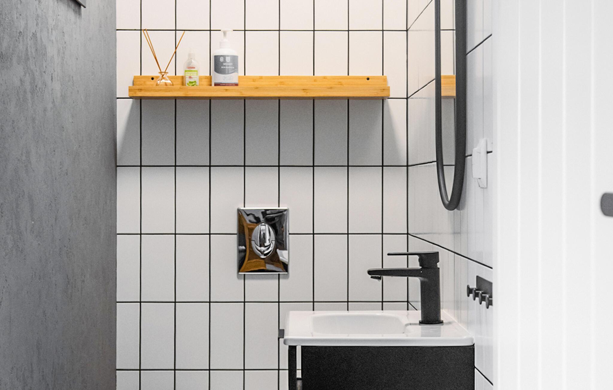 Badeværelse 6m2 (nr. 1) - WC. Varmt og koldt vand. Bruser og badekar