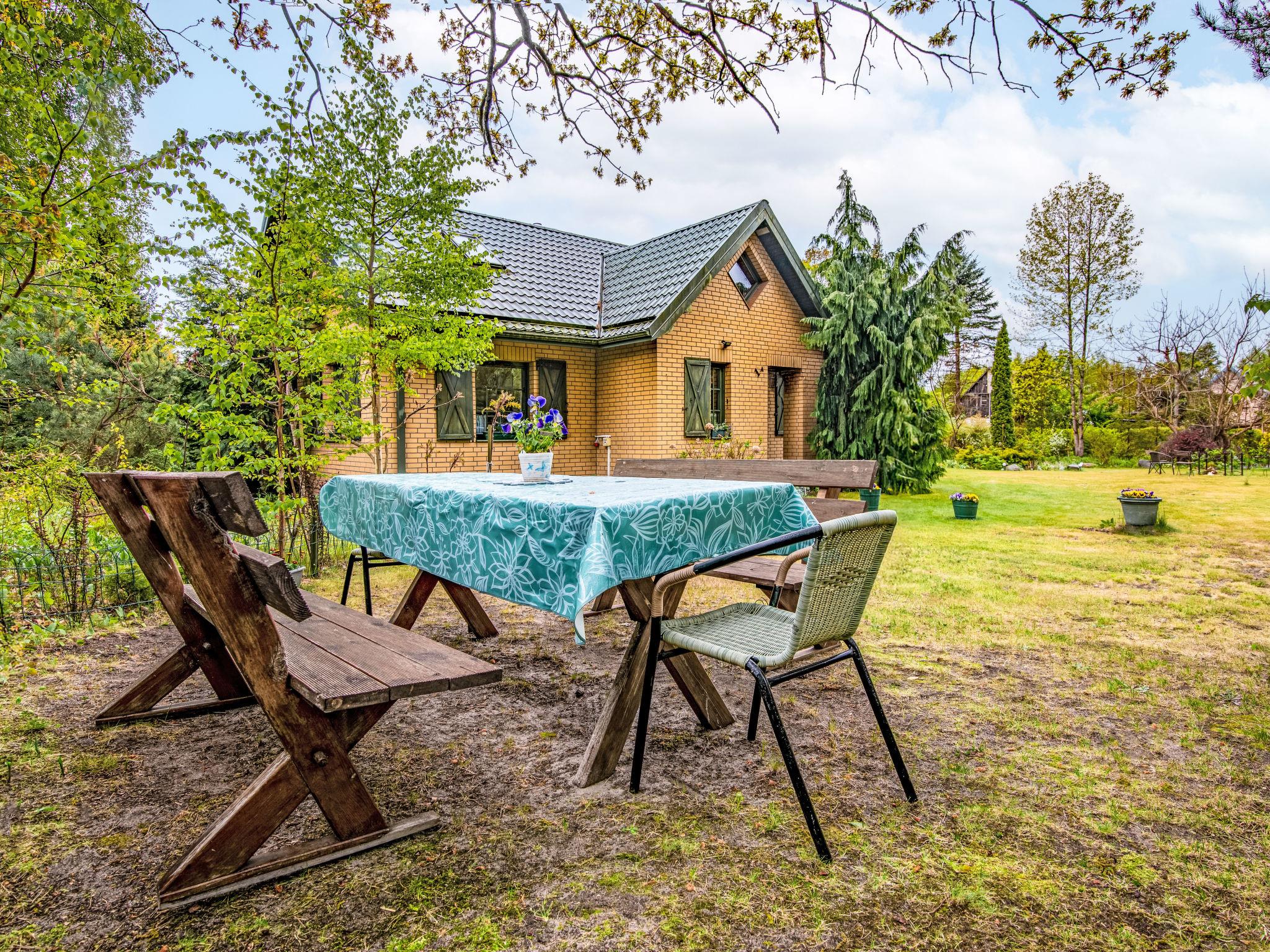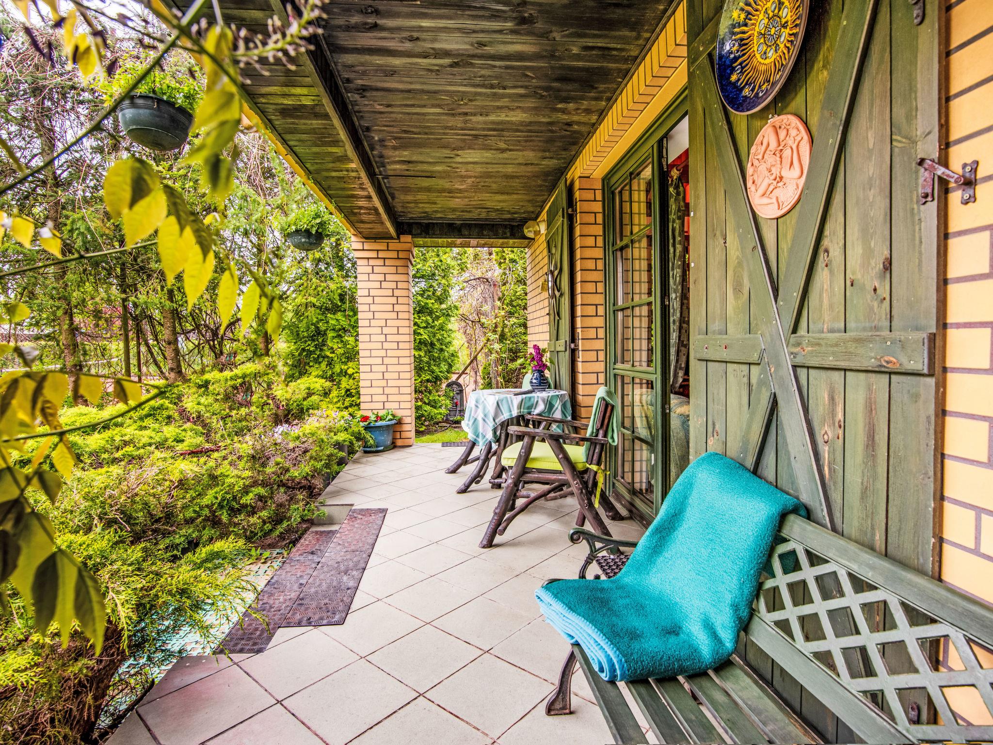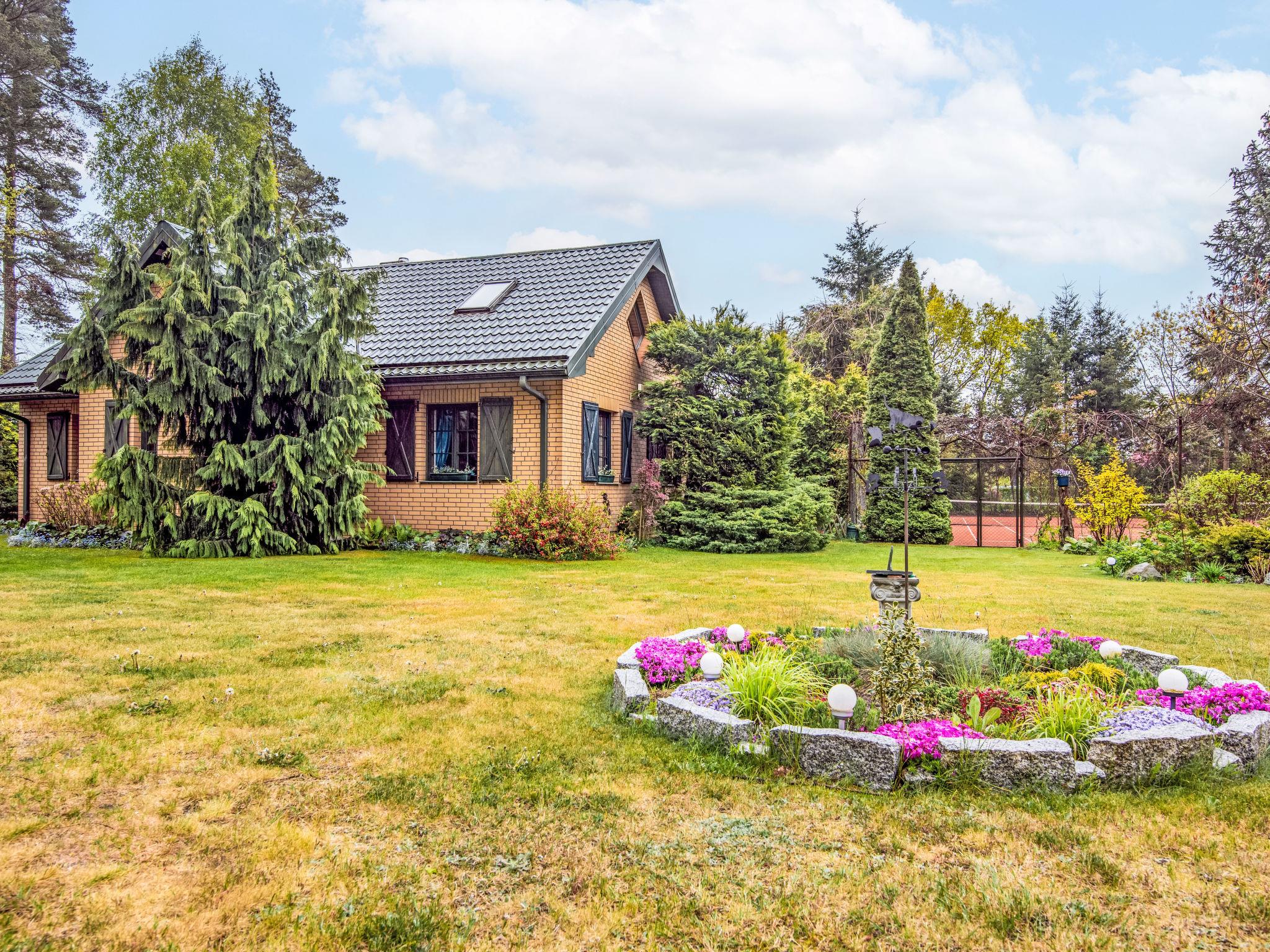 Modlinek 7 km from Ustki: Comfortable single-family house "Modlinek", surrounded by trees. In the resort 7 km from the centre of Ustki, in a quiet, sunny position, along the wooded area, 1.3 km from the sea, 4.5 km from the beach, in the countryside. Private: property 3'400 m2 (fenced), beautiful, well-kept garden lawn and flowers. Tennis, floodlit, pergola, terrace, garden furniture, barbecue, fireplace, children's playground (swing, sandbox). In the house: washing machine. Available: bicycles (5). Motor access to the house. Parking at the house on the premises. Shop 2.5 km, bar 3 km, bus stop 2.5 km, railway station 5 km, sandy beach 4.5 km. Riding stable 7 km. Please note: car recommended. Suitable for families. The grounds and tennis court (free of charge) have a clay surface (tennis lessons with a visiting instructor are available - extra) - all lit. Access to a guarded sandy beach through the forest is 4.5 km on foot or by bike, or 6 km directly to the beach by car. Lake - 500 m (no swimming - "Lake Modla" ornithological reserve). Free use of 5 bikes, including a bike shelter. The owners speak English and Italian. The property sleeps a maximum of 10 people + 1 child under 2 years old.