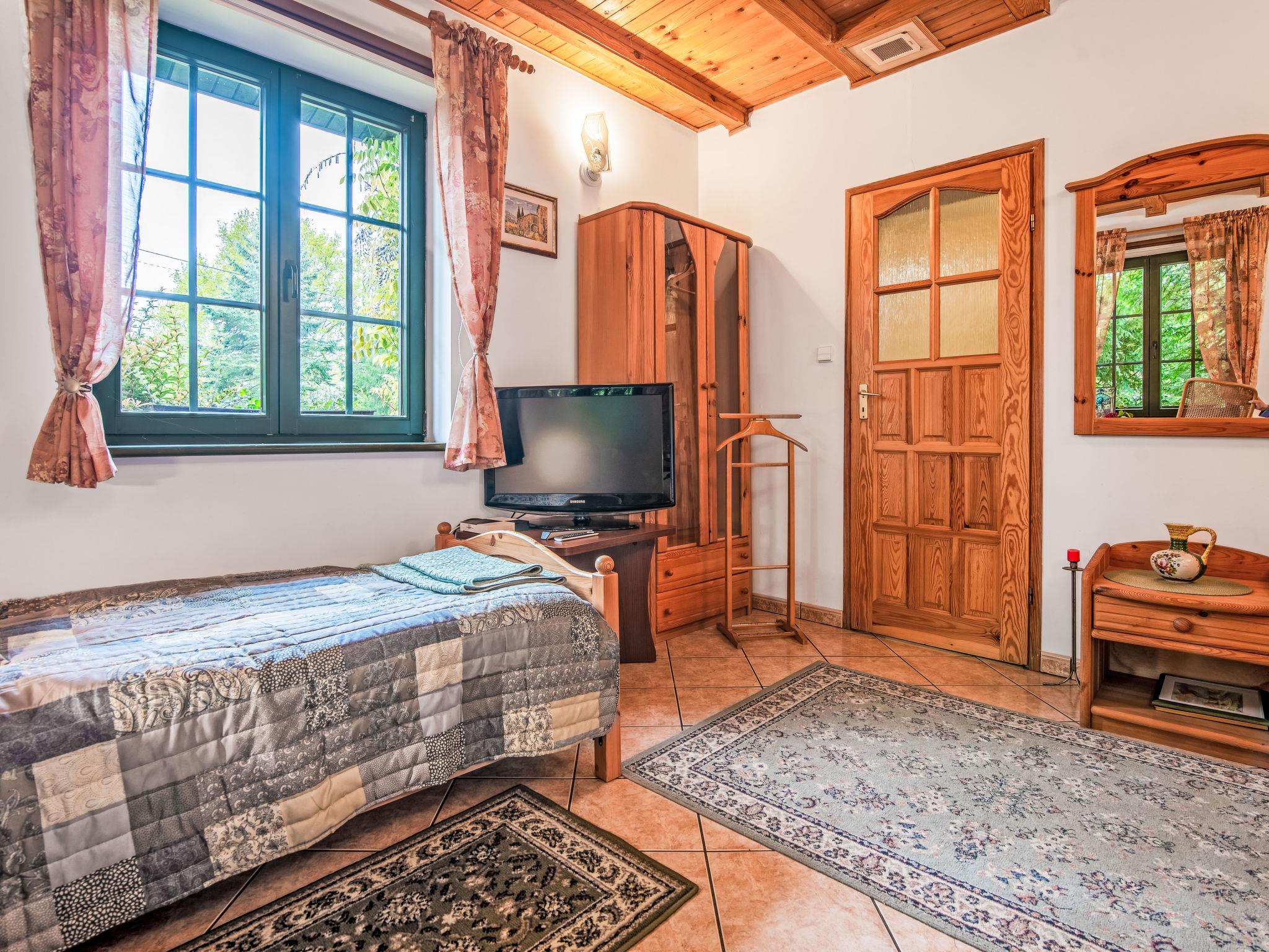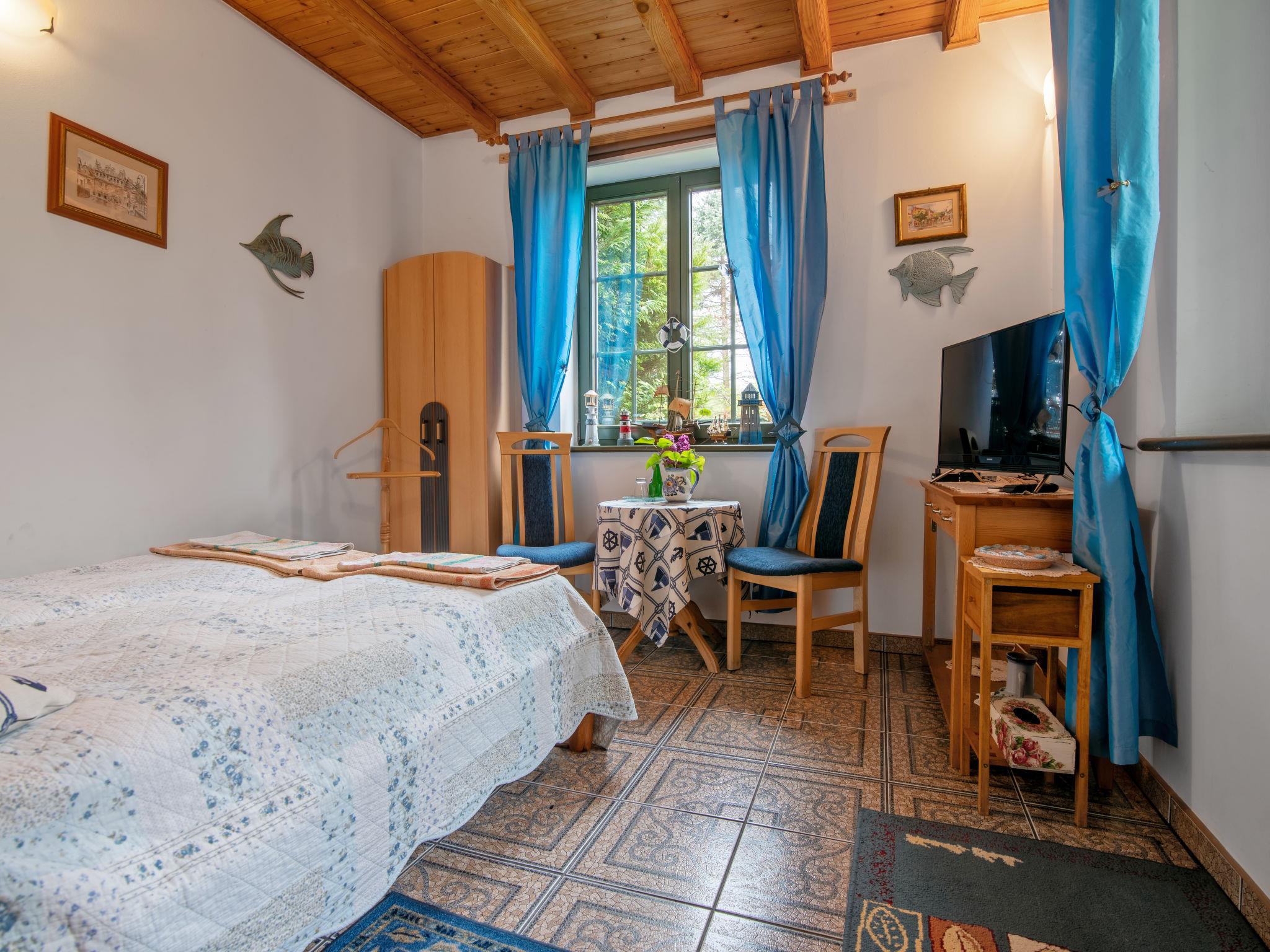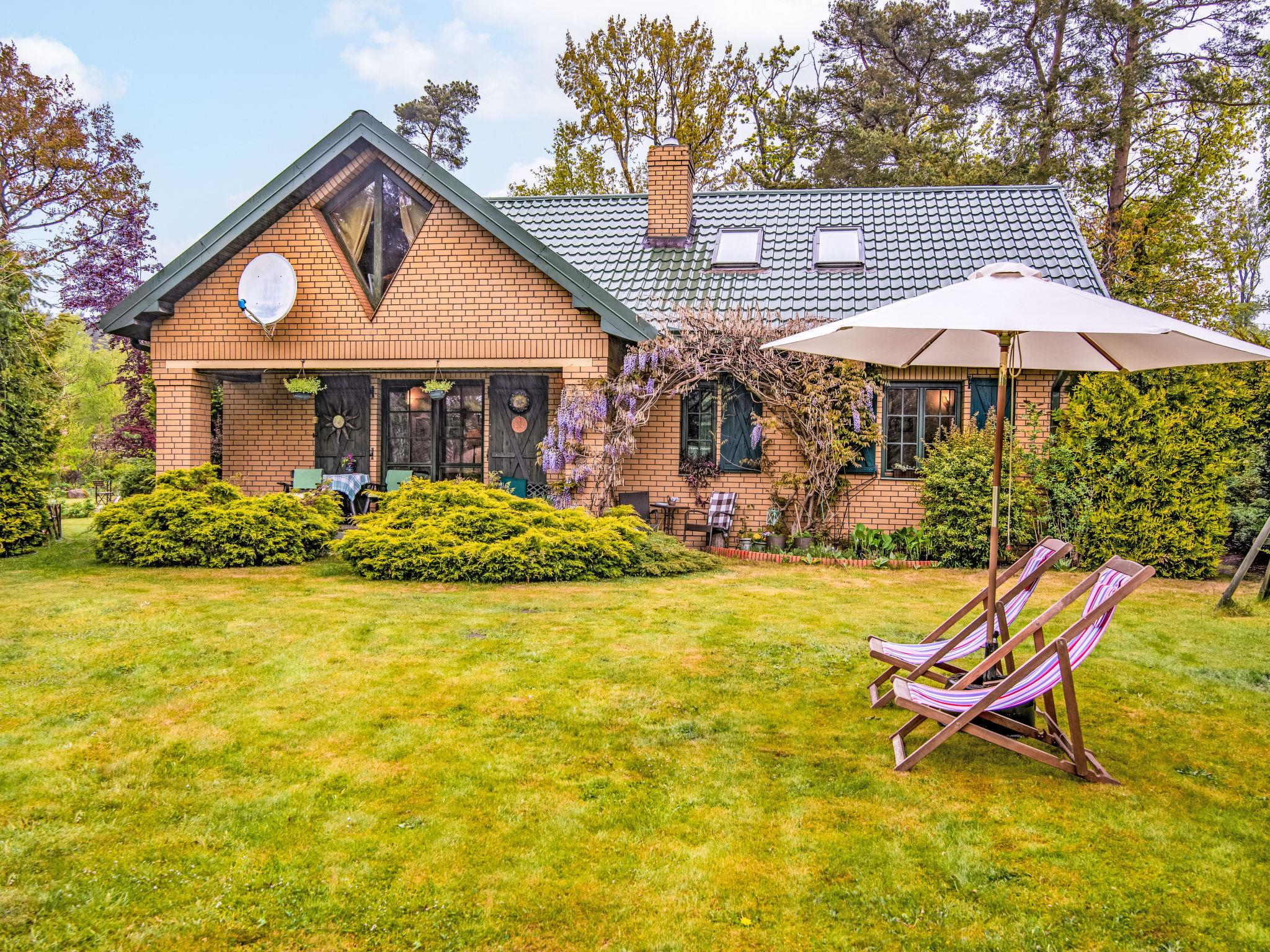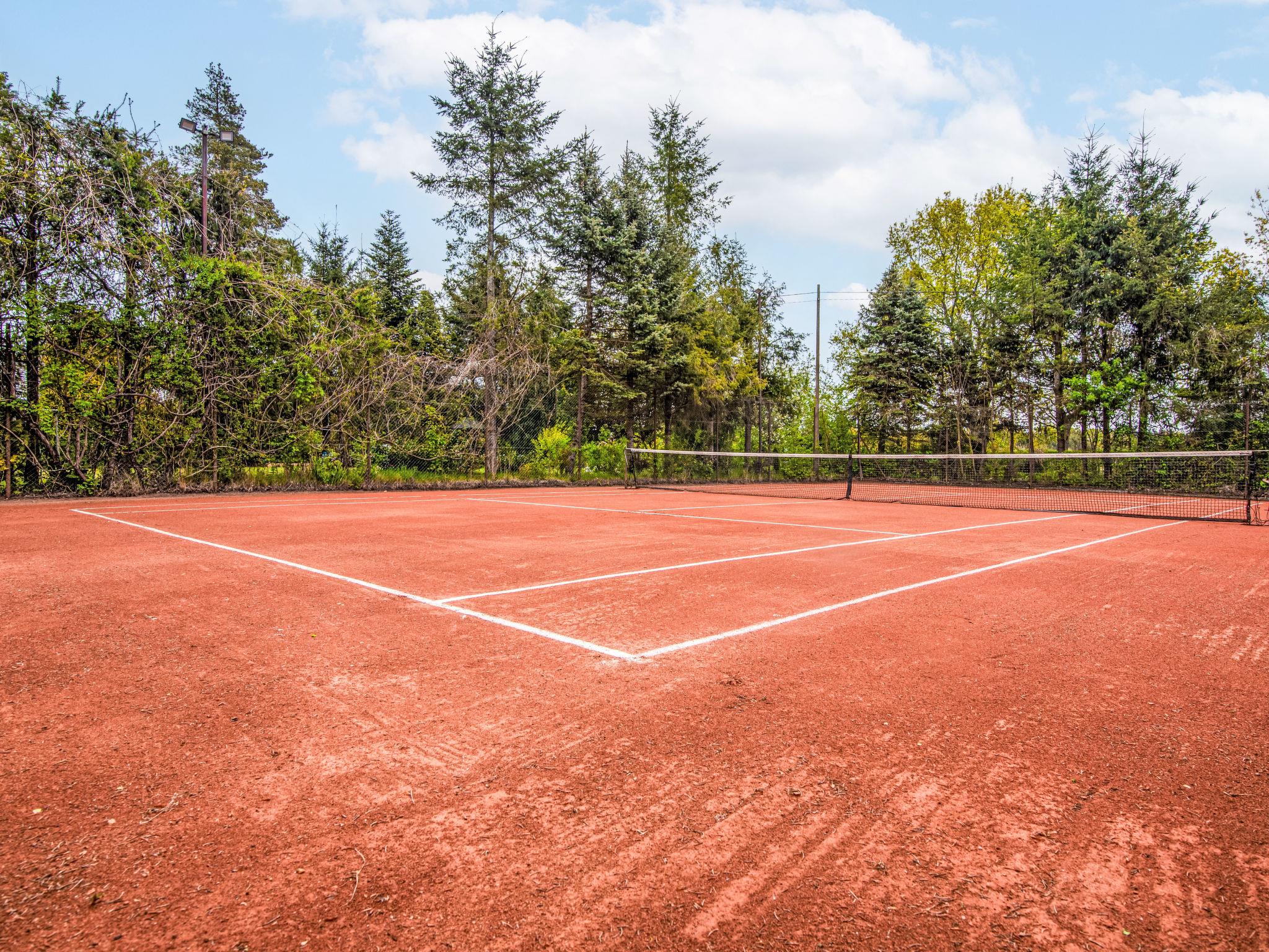 Modlinek 7 km from Ustki: Comfortable single-family house "Modlinek", surrounded by trees. In the resort 7 km from the centre of Ustki, in a quiet, sunny position, along the wooded area, 1.3 km from the sea, 4.5 km from the beach, in the countryside. Private: property 3'400 m2 (fenced), beautiful, well-kept garden lawn and flowers. Tennis, floodlit, pergola, terrace, garden furniture, barbecue, fireplace, children's playground (swing, sandbox). In the house: washing machine. Available: bicycles (5). Motor access to the house. Parking at the house on the premises. Shop 2.5 km, bar 3 km, bus stop 2.5 km, railway station 5 km, sandy beach 4.5 km. Riding stable 7 km. Please note: car recommended. Suitable for families. The grounds and tennis court (free of charge) have a clay surface (tennis lessons with a visiting instructor are available - extra) - all lit. Access to a guarded sandy beach through the forest is 4.5 km on foot or by bike, or 6 km directly to the beach by car. Lake - 500 m (no swimming - "Lake Modla" ornithological reserve). Free use of 5 bikes, including a bike shelter. The owners speak English and Italian. The property sleeps a maximum of 10 people + 1 child under 2 years old.