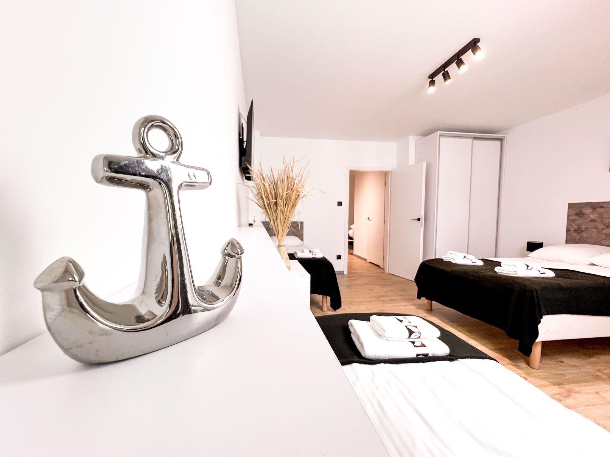 Flats Modern family flats. All flats have a balcony. The flats are equipped with a bathroom (shower) and a kitchenette (microwave, dishwasher, fridge, cooker and kettle). Wi-Fi is available in the complex. The holiday flat consists of a living room with a dining area and a sofa bed. The bedroom has a double bed and two single beds. There are a total of 6 beds. Each flat is equipped with a Smart TV. A high chair and travel cot will also be available. The flat has a hairdryer , hoover, beach equipment, bed linen, towels (we do not offer beach towels) and cleaning products. (We also offer external encryption devices). Poddabek Complex offering flats is located in the centre of a picturesque village, just 300 m from the sea. Surrounded by beech forests. The flat is located near the Slovinski Natural Park. There is a public bicycle station with a fireplace, as well as a public playground and a gym. The quiet and peaceful surroundings guarantee relaxation. Poddabek is a modern complex consisting of three buildings housing more than 100 flats. There is free public parking on the premises Free internet is available. There are also swimming pools in the complex. There is an outdoor swimming pool on the roof of the building and two paddling pools for children. There is an indoor swimming pool with an open terrace. Entertainment and health. A common room for children and adults, a playground, a fire pit, a volleyball and badminton court. Rehabilitation and health treatments can also be purchased at the facility. . Poddabie - A very pretty place. Poddabie is a small village. It straddles a picturesque stretch of coastline between Ustka and Rowy in the Slupsk district. The place is very attractive for those wishing to spend a peaceful holiday in the midst of nature, doing hiking and cycling. The place is located on the edge of the Slowinski Natural Park and offers something you will not experience in typical seaside resorts. The Poddabie beach is located under a cliff and is 100 metres long in summer. - Holiday flats Unique location in the protected landscape area "Pas Nadmorski na Wschód od Ustki" within the coastal protected area and surrounded by beech forests on the cliffs. Away from the hustle and bustle. The seaside resort is a guarantee of a successful holiday. A wide, sandy beach stretches along the entire coastline at the foot of the cliffs. The village area, whose buildings are located in the surrounding forest, is an attractive area for hiking and relaxation. There are numerous restaurants and shops in the village.