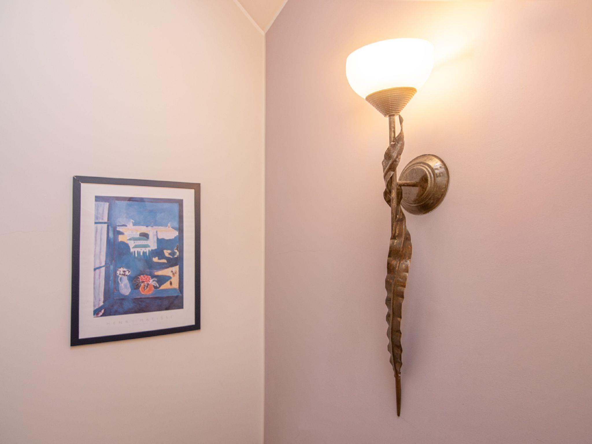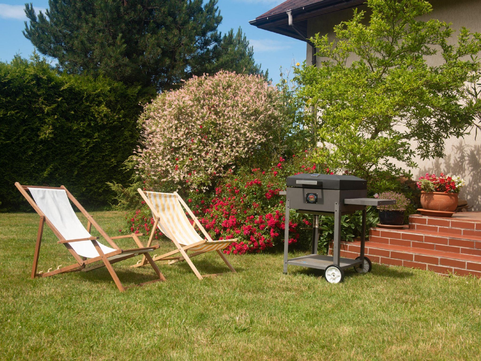 5-room house 150 m2 on 2 levels. Living/dining room with open-hearth fireplace, satellite TV and radio. Exit to the garden, to the terrace. 1 room with 1 french bed. Open kitchen (oven, dishwasher, 4 ceramic glass hob hotplates, microwave, electric coffee machine). Shower/WC. Upper floor: 2 rooms, each room with 1 french bed. Exit to the balcony. 1 room with 2 beds. Bath/bidet/WC. Electric heating (extra). Terrace furniture, deck chairs (8). Parking at the house. The rooms on the second level have partially sloping ceilings.Electric heating and air conditioning-extra acc to use.