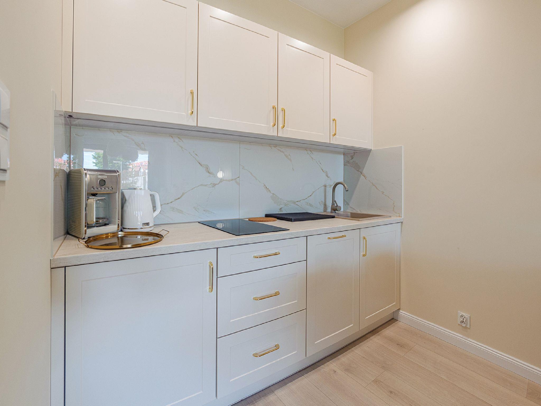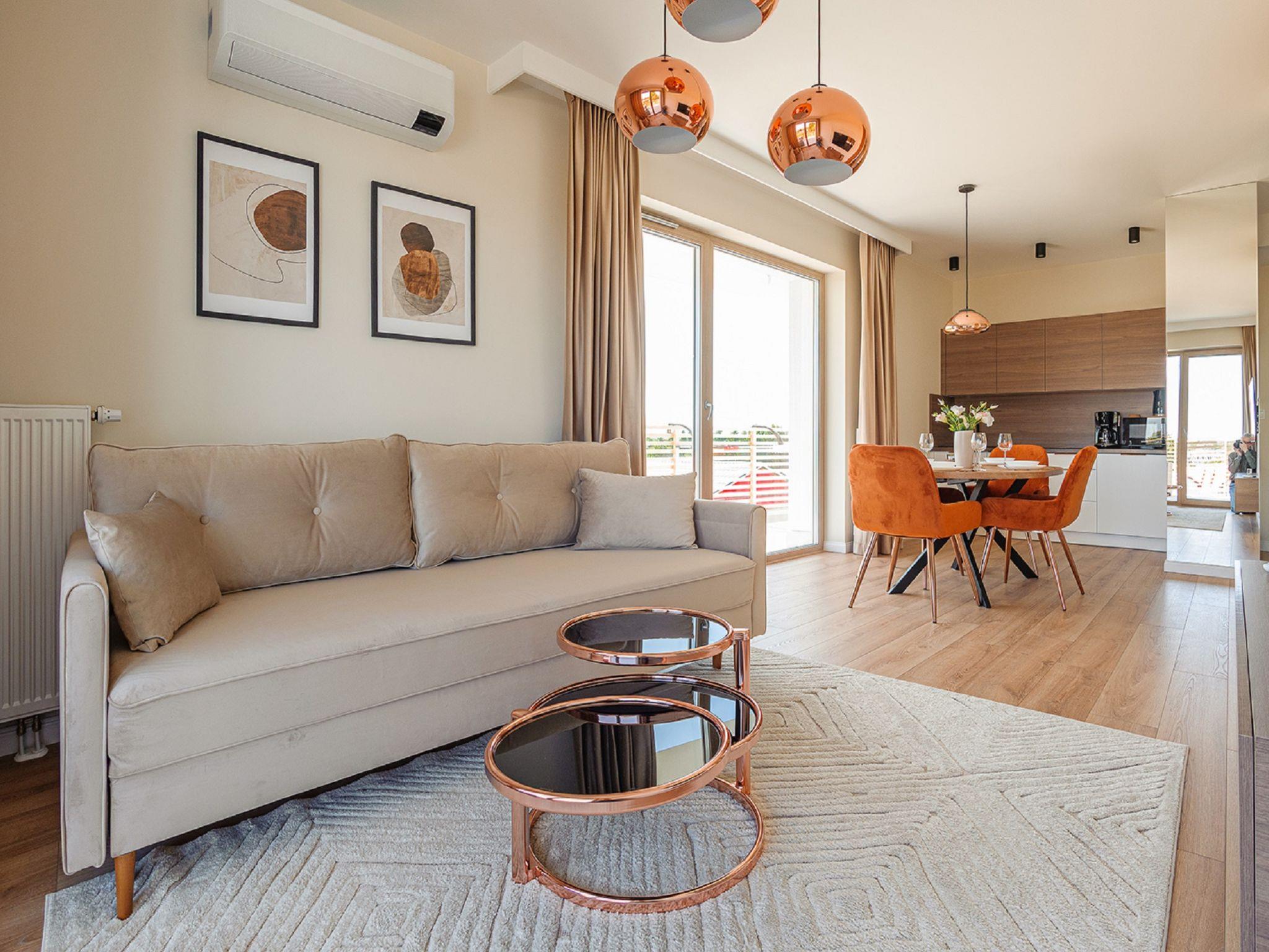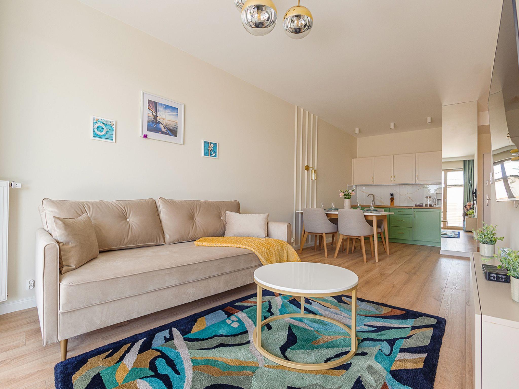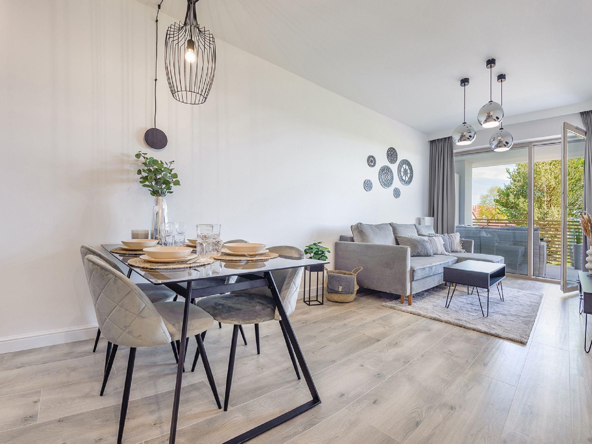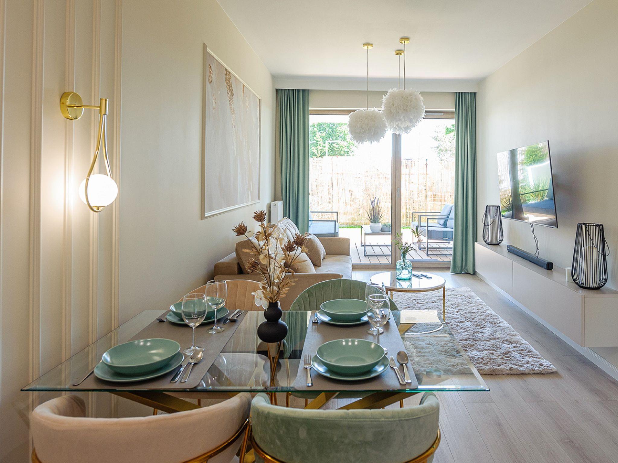 Modern, cosy apartment block "Gea Eco". In a quiet, sunny position, 200 m from the sea, 200 m from the beach. In the house: WiFi, central heating system, washing machine. Parking. Grocery 500 m, restaurant 80 m, bus stop 2.3 km, railway station 2.3 km. Riding stable 3 km. Nearby attractions: Nowa Starówka 11 km, Muzeum Oreza Polskiego 11 km, Latarnia morska w Kolobrzegu 12 km. Please note: the photograph shows a typical example. Additional accommodations can be booked. The apartment may be on the ground floor, first or second floor. There may be an additional on-site parking fee. Child accepted over the maximum number of people up to 3 years old.