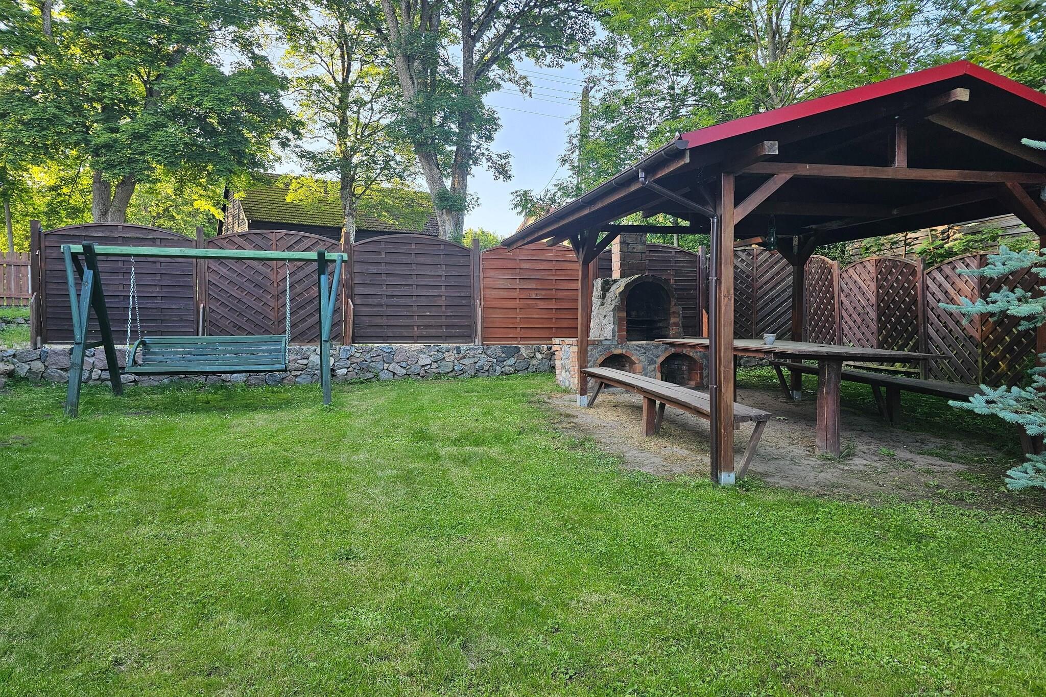 Et komfortabelt XXL sommerhus beliggende på landet, i et roligt sted, omgivet af enge og skove, midt i et smukt naturlandskab med talrige søer. Den nærmeste sø, hvor man kan bade, fiske fra en mole eller med båd, ligger 1,8 km væk. Det 2-etagers stenhus har en rummelig stue med pejs, et stort bord og TV i stueetagen. Herfra er der udgang til en overdækket terrasse med et sæt havemøbler. Der er grillfaciliteter. I stueetagen er der også et rummeligt køkken med fremragende udstyr og et toilet. På første sal er der 5 separate soveværelser (heraf 1 med balkon) og 4 badeværelser (hver med bruser og toilet). Der er en vaskemaskine. Huset opvarmes hovedsageligt af en effektiv pejs (træ inkluderet i prisen for opholdet), men det er også muligt at leje elvarmere (mod tillæg). Trådløst internet er tilgængeligt. Der er en parkeringsplads og en legeplads for børn på den indhegnede grund. Ejeren af ??anlægget bor ved siden af ??og tilbyder gæsterne (mod betaling) en tennisbane, bordtennisbord, bordfodbold, cykler og en fiskedam fyldt med fisk. Wierzchowo-søen ligger 1,8 km derfra. Du kan svømme der (meget rent vand) og fiske. Ejeren har et privat område ved kysten (3,5 km fra huset), hvor gæsterne kan benytte en privat strand, en mole og et overdækket lysthus. Du kan komme dertil i bil, på cykel eller gå en dejlig gåtur. Ejeren giver gæsterne en robåd (gratis, men reservation påkrævet). Prisen for opholdet inkluderer: sengelinned, håndklæder, el- og vandforbrug, brænde, slutrengøring, internet, parkering, barneseng og høj stol (tilmelding nødvendig). Feriehuset er omgivet af talrige søer, skove og enge. Lystfiskere, vandsportsentusiaster, vandrere og cyklister har et ferieparadis her. Herfra kan du gå til havet (ca. 60 km).