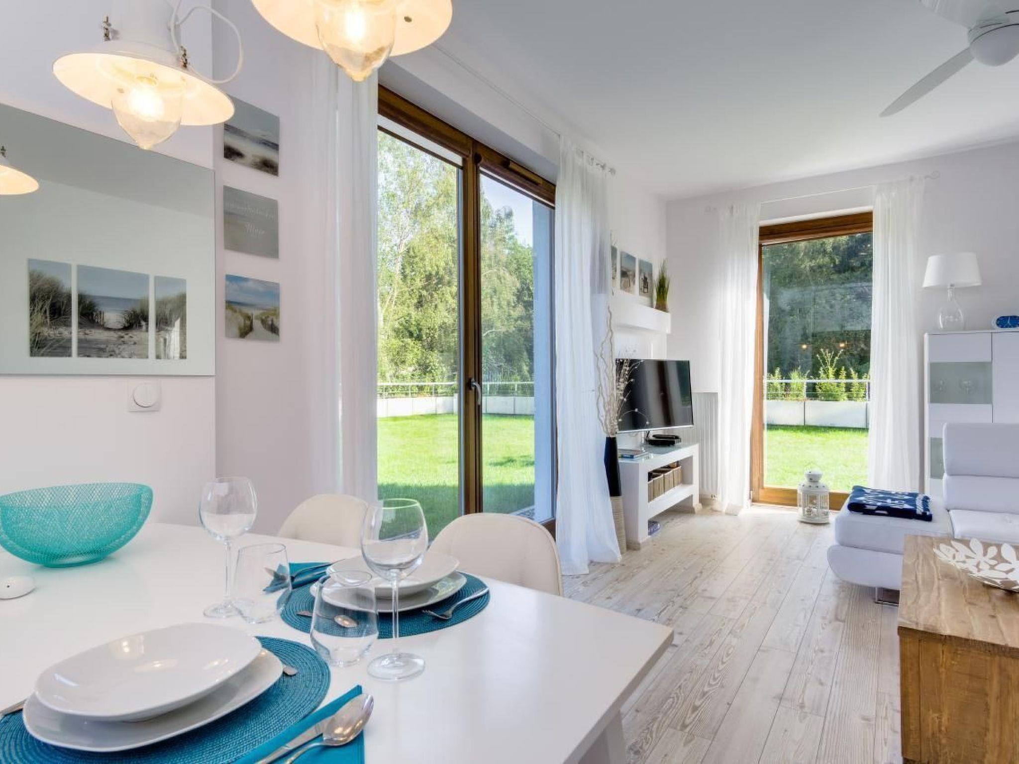 In the immediate vicinity (200 m) you will find a small shop, a bakery, a bank and a grocer. There are also public transport links to Gdansk in the immediate vicinity. So you can reach all destinations comfortably without having to use your own car.