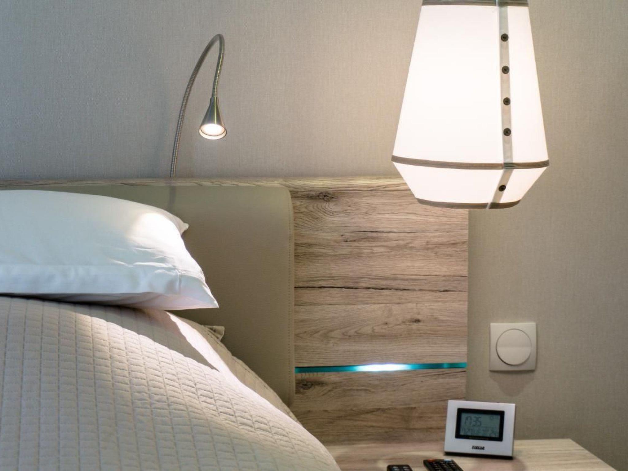 Other bedroom furnishings: LED TV, USB charging ports, reading light