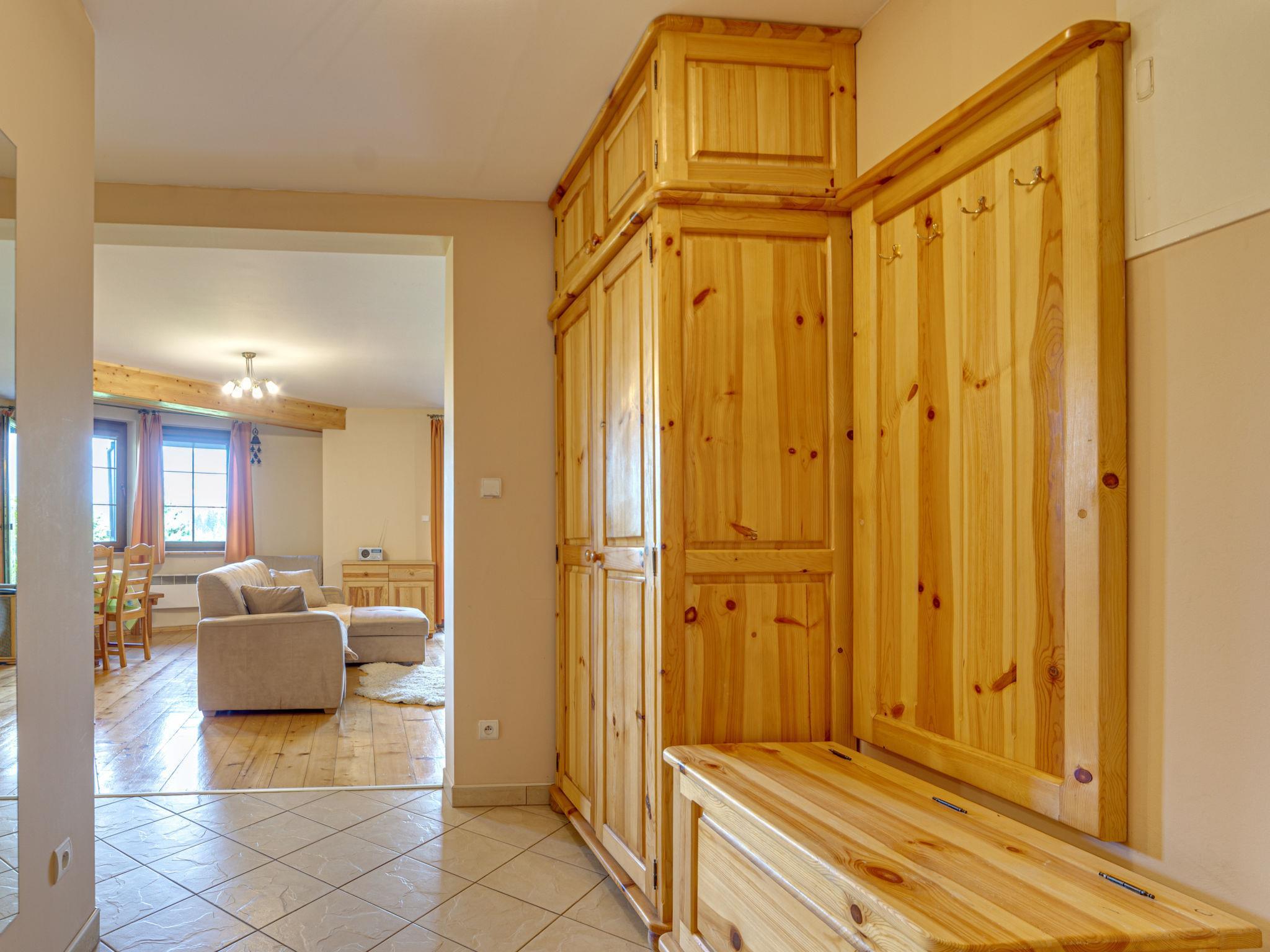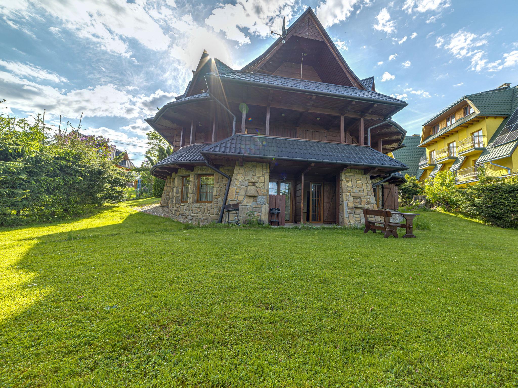 Chalet "Hrube Wyzne", built in 2005. On the outskirts, 8 km from the centre, in a quiet, sunny, elevated position, located by a road, in the countryside. For shared use: property 1'000 m2 (fenced), lawn. In the house: internet access. Motor access to the house. In Winter: please take snow chains. Parking at the house on the premises. Shop 800 m, grocery, supermarket 7 km, restaurant 1 km, bus stop 1 km, railway station 7 km, indoor swimming pool 9 km, thermal baths 18 km. Tennis 8 km, walking paths from the house 500 m, cable car 6 km, ski lift 5 km, ski rental 5 km, ski school 5 km, children's ski school 5 km, cross country ski track 5 km, ice rink 6 km. Please note: suitable for families. Additional accommodations can be booked.