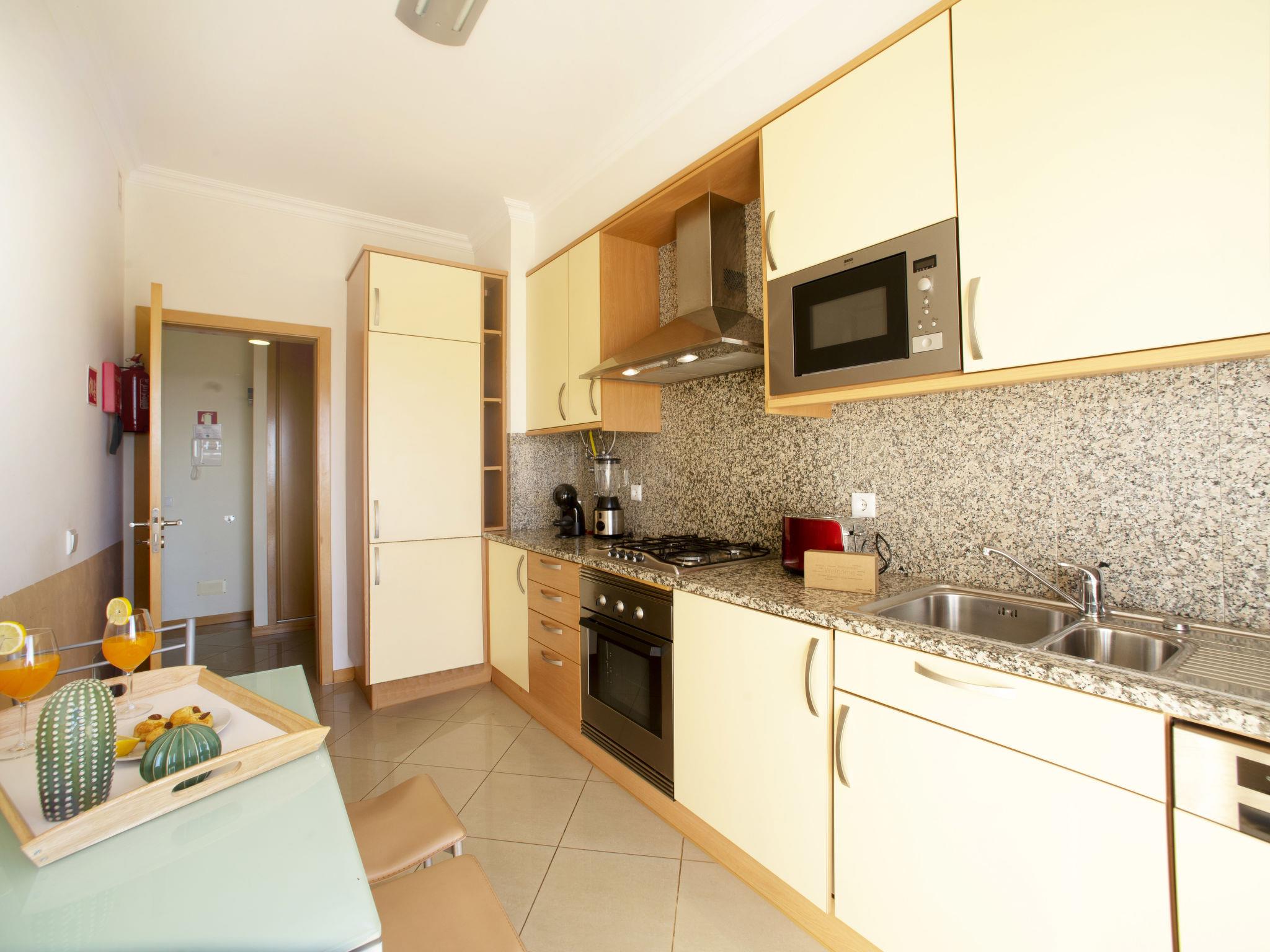 Very beautiful apartment block "Encosta da Orada", built in 2007. In the district of Albufeira, in an elevated position on top of a hill, 1.1 km from the sea. For shared use: well-kept terraced garden, swimming pool (depth 100 - 200 cm, seasonal availability: 01.Jan. - 31.Dec.). WC in the pool area, children's pool. In the house: lift. Communal covered parking space n ag. Grocery 1.1 km, supermarket 1.1 km, shopping centre 5.7 km, restaurant 650 m, bar 700 m, bakery 1.4 km, café 500 m, pedestrian zone 1.2 km, bicycle rental 1.3 km, bus stop 400 m, railway station "Ferreiras-Albufeira" 6.3 km, sandy beach "Do Peneco - Túnel" 1.1 km.