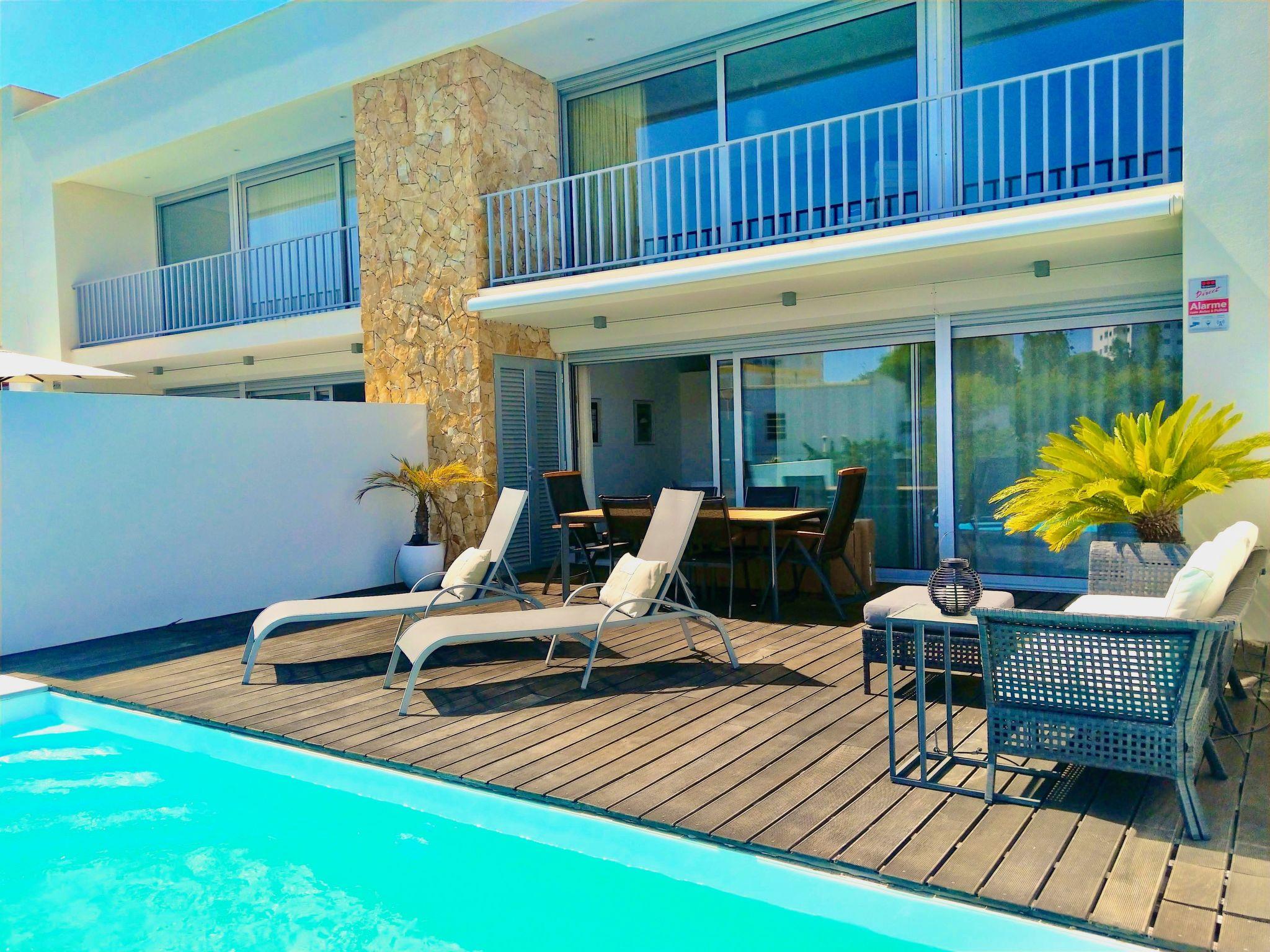 Vila Ray Design is a modern townhouse villa with a private heatable pool, ideal for families with children up to 6 people. Located in the centre of Albufeira in a residential area 10 minutes from the beach, supermarket restaurants, and many other facilities. Vila Ray Design has a modern decoration offering luxurious comfort, equipped with TV, Netflix, Ping Pong table, WIFI internet, Heatable pool, and air conditioning. Inside the property, there is a private space to park a car.