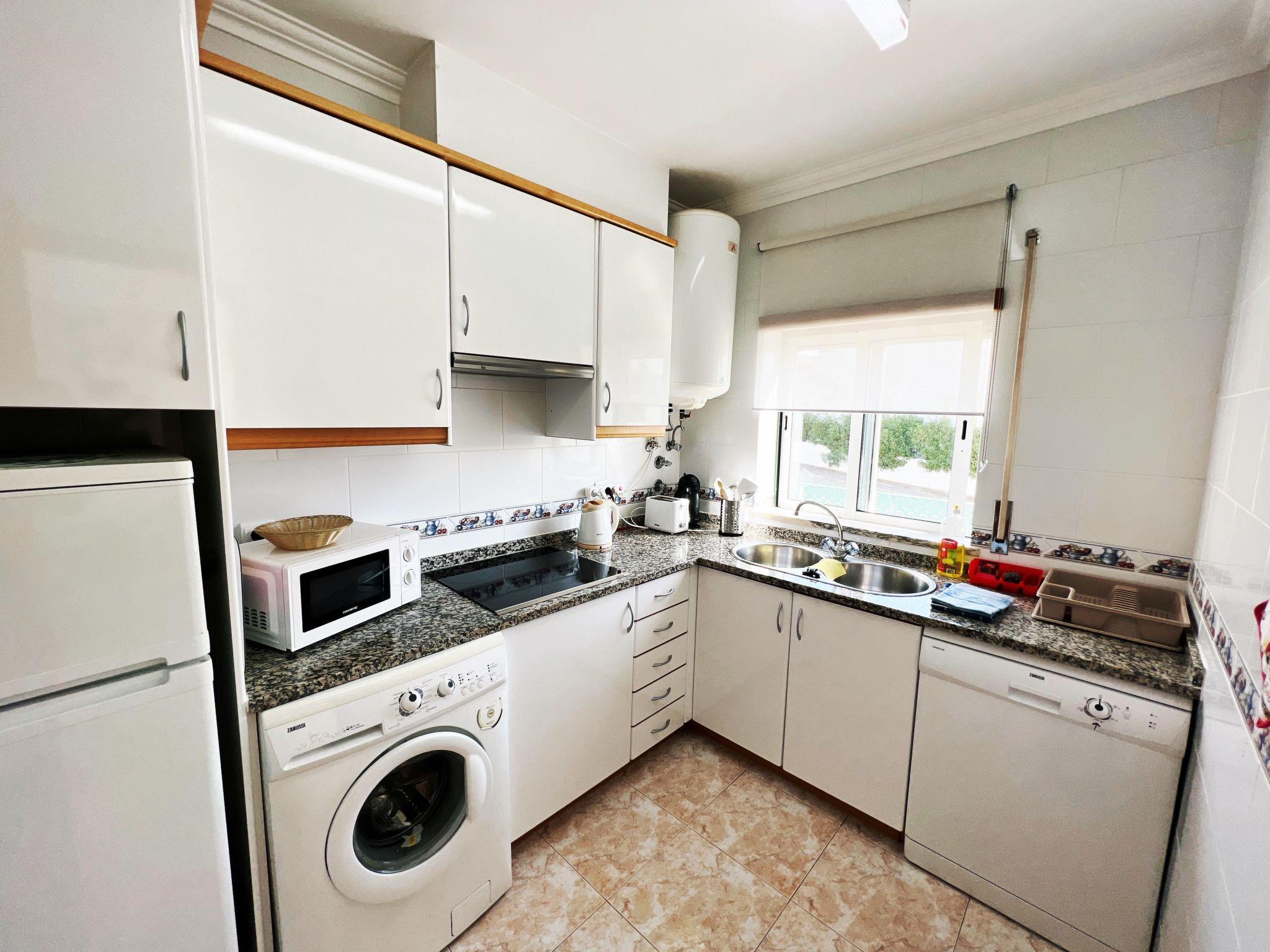 1-bedroom apartment with 1 bathroom, kitchen, terrace, in a condominium with swimming pool and located 6 km west of Albufeira, in Olhos de Agua 600m from the town centre and 800m from the beach. This is a flat in a quiet area, within walking distance to all amenities such as restaurants, beaches, bars, shops, pharmacy and banks. The flat is located on the ground floor of a building with 3 floors 1 bedroom, 1 with double bed, access to the terrace 1 bathroom with shower, living room with dining area and direct access to the furnished terrace with BBQ, equipped with a sofa bed, TV. Fully equipped kitchen with washing machine, dishwasher and cooker, fridge, hot water tank, microwave, blender, toaster, kettle and coffee machine (filter + capsules). Swimming pool