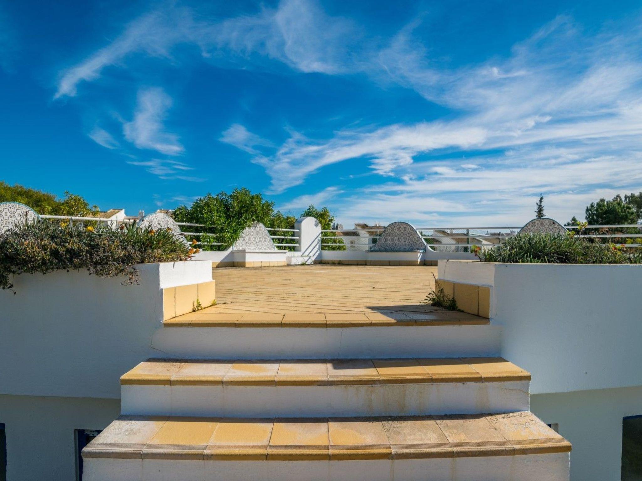 The apartment is in the first floor of a building that is in a private condo. The condo is composed of villas and apartment blocks. The buildings are close to the main road and the villas by the swimming pool. there is no lift! Located in a quiet area, far away from the crowdy and noisy streets of the Golden Beach \"Strip\", but still close enough to get there in a 2-3 minutes walk. There are two beaches at a walking distance, the Aveiros at 350 m and the Oura Beach at 600 meters. NOTE: This is an apartment and not a Villa! The apartment is in the second line from the swimming pool and not with pool view at all, anyway is it a fantastic apartment.