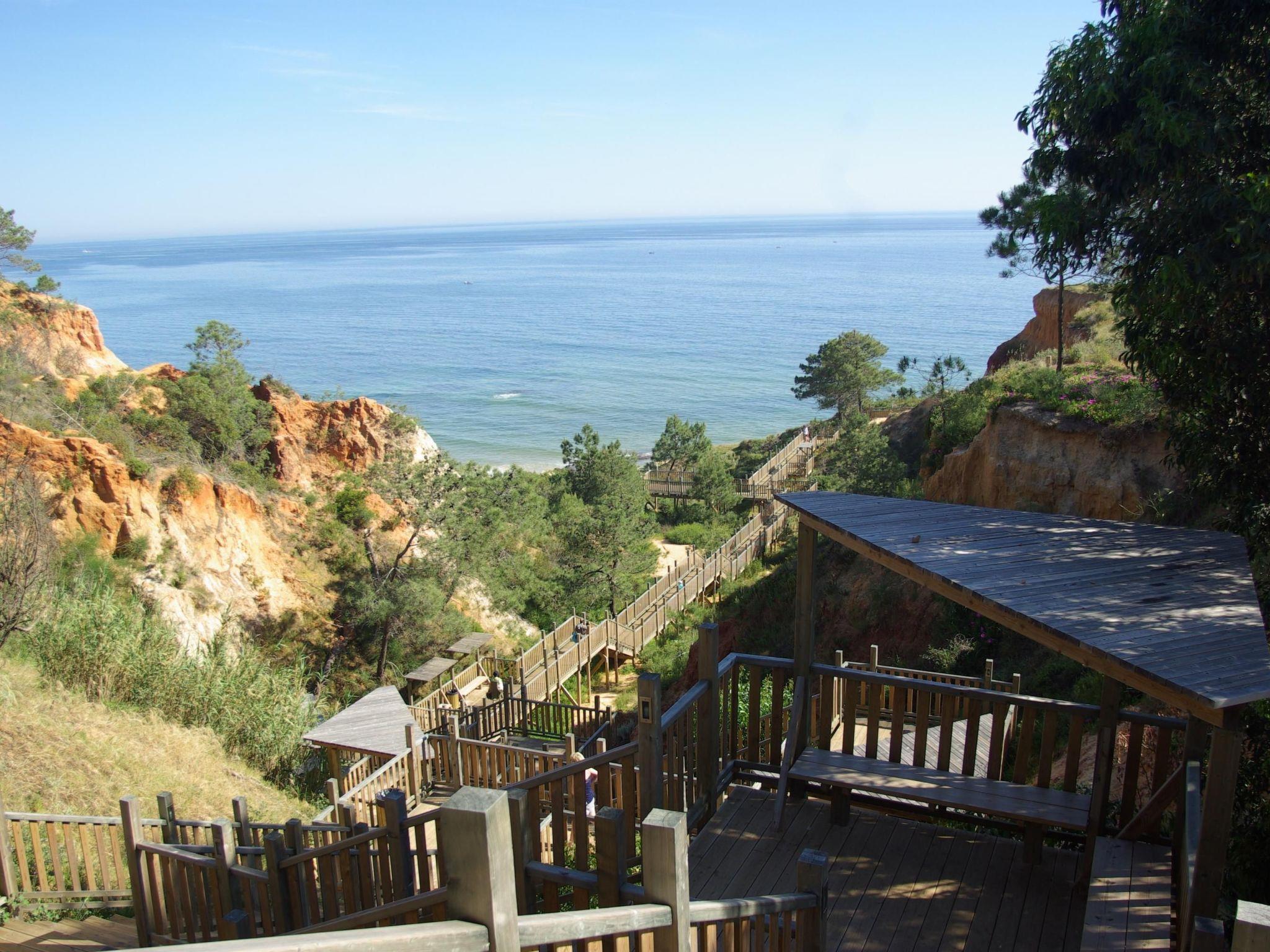 Your apartment is on the ground floor and is suitable for up to four people. It has a bedroom with a wardrobe and two single beds (90 x 200cm) that can be joined together. The kitchen is fully-equipped and includes a fridge, stove, oven, coffee machine, toaster and kettle. The kitchen also has both a washing machine and a dishwasher. The living room provides a sofa suite, including 2 sofa beds for up to two people each (140 x 200cm) and a TV (Portuguese channels). You can sit at the dining table. Two children’s beds can be provided at a supplementary charge. The bathroom comprises a toilet, washbasin, shower and bath.