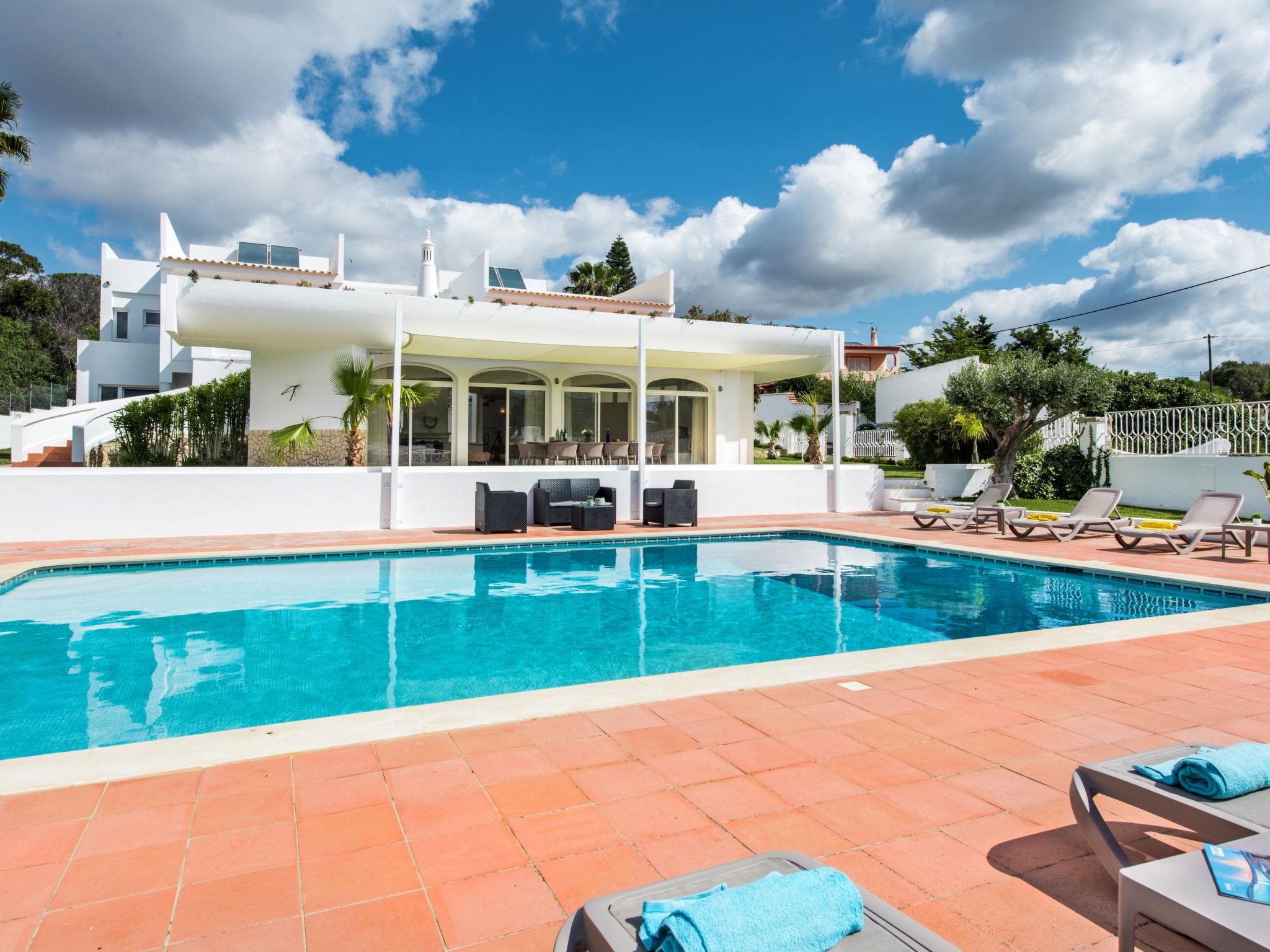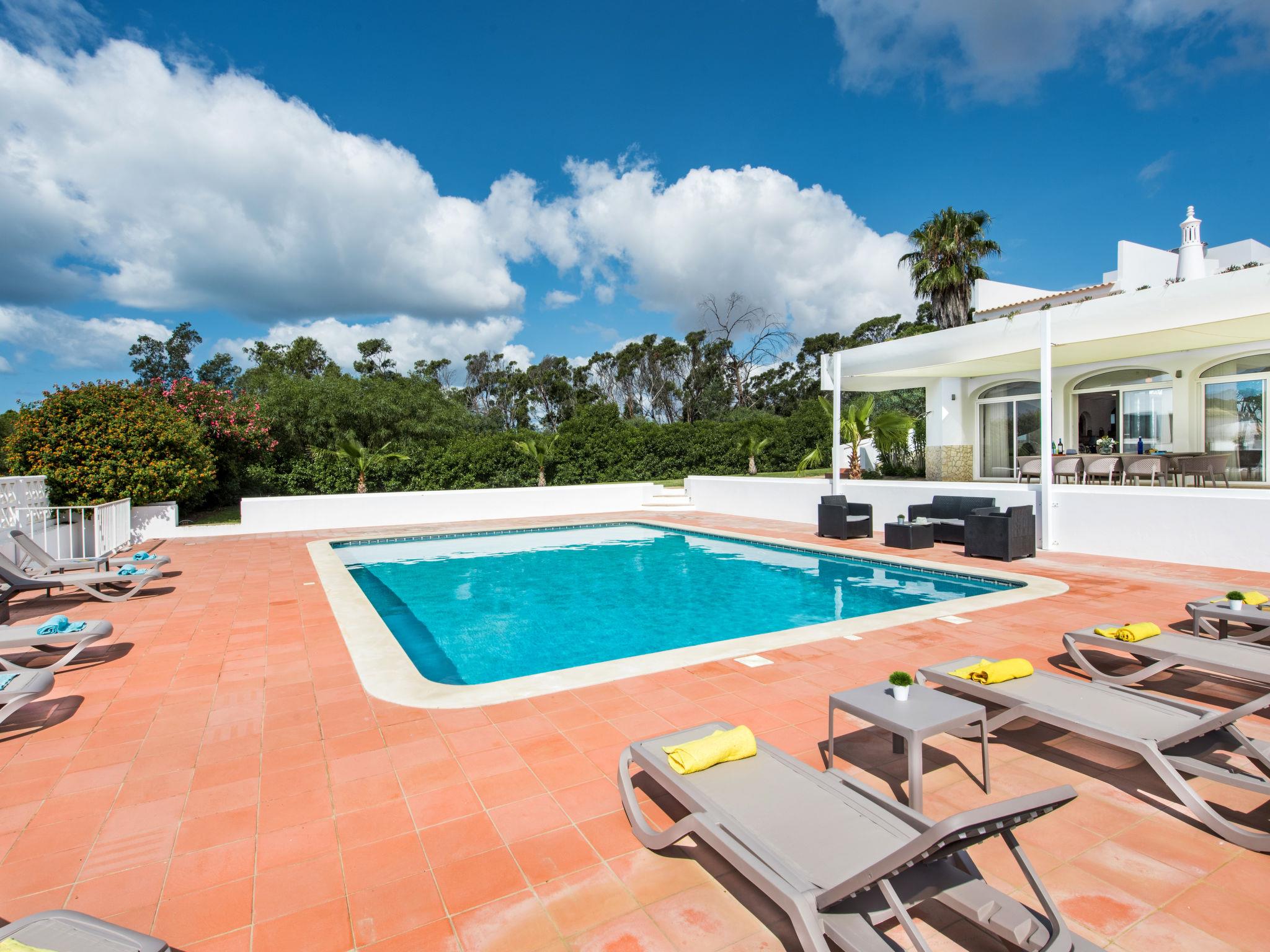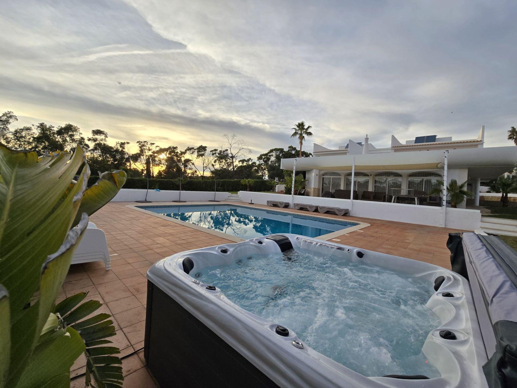 Very modern, cosy villa "Aladdin - VIP Properties", 2 storeys, detached. Outside the resort, 4 km from the centre of Albufeira, residential area (villas), 1.8 km from the sea. Private: beautiful garden to relax, swimming pool angular (5 x 10 m, depth 90 - 180 cm, seasonal availability: 01.Jan. - 31.Dec.). Outdoor shower, garden furniture, barbecue. In the house: WiFi, hot tub, air conditioning, washing machine. Parking at the house. Shop 2.5 km, grocery 2.7 km, supermarket 2.5 km, shopping centre 3.7 km, restaurant 1.1 km, bar 1.9 km, bakery 2.5 km, café 1.9 km, bicycle rental 5.2 km, bus stop 1.2 km, sandy beach "Praia Maria Luísa" 1.8 km, diving center 7.6 km. Marina 8.2 km, golf course (18 hole) 700 m, surf school 11.7 km, tennis 6.3 km, riding stable 3.3 km. Nearby attractions: Zomarine 13 km, Aqualand 19 km, Krazy World 17 km, Sand City 22 km, Faro Airport 40 km, Reserva Natural Caminho da Baleeira 10 km. Well-known lakes can easily be reached: Lagoa dos Salgados 16 km. Please note: car recommended, no lift. Suitable for families. Loading and unloading of baggage is possible at the holiday house. This house has a separate studio with kitchen and bathr and a small living room with Wi-Fi and TV channels is already mentioned in the description.Young groups under 25 y.o. will be charged an extra deposit per person on spot .